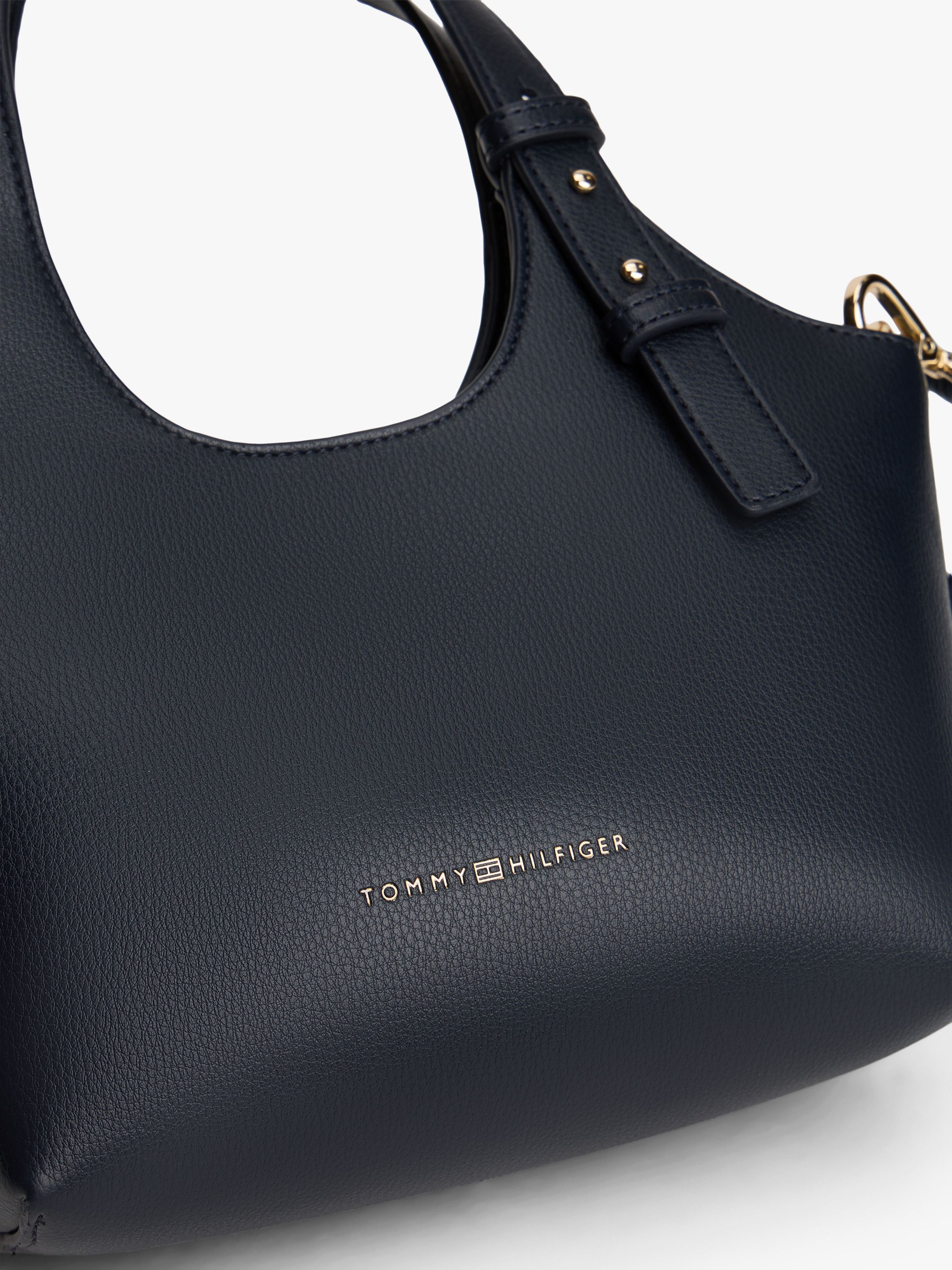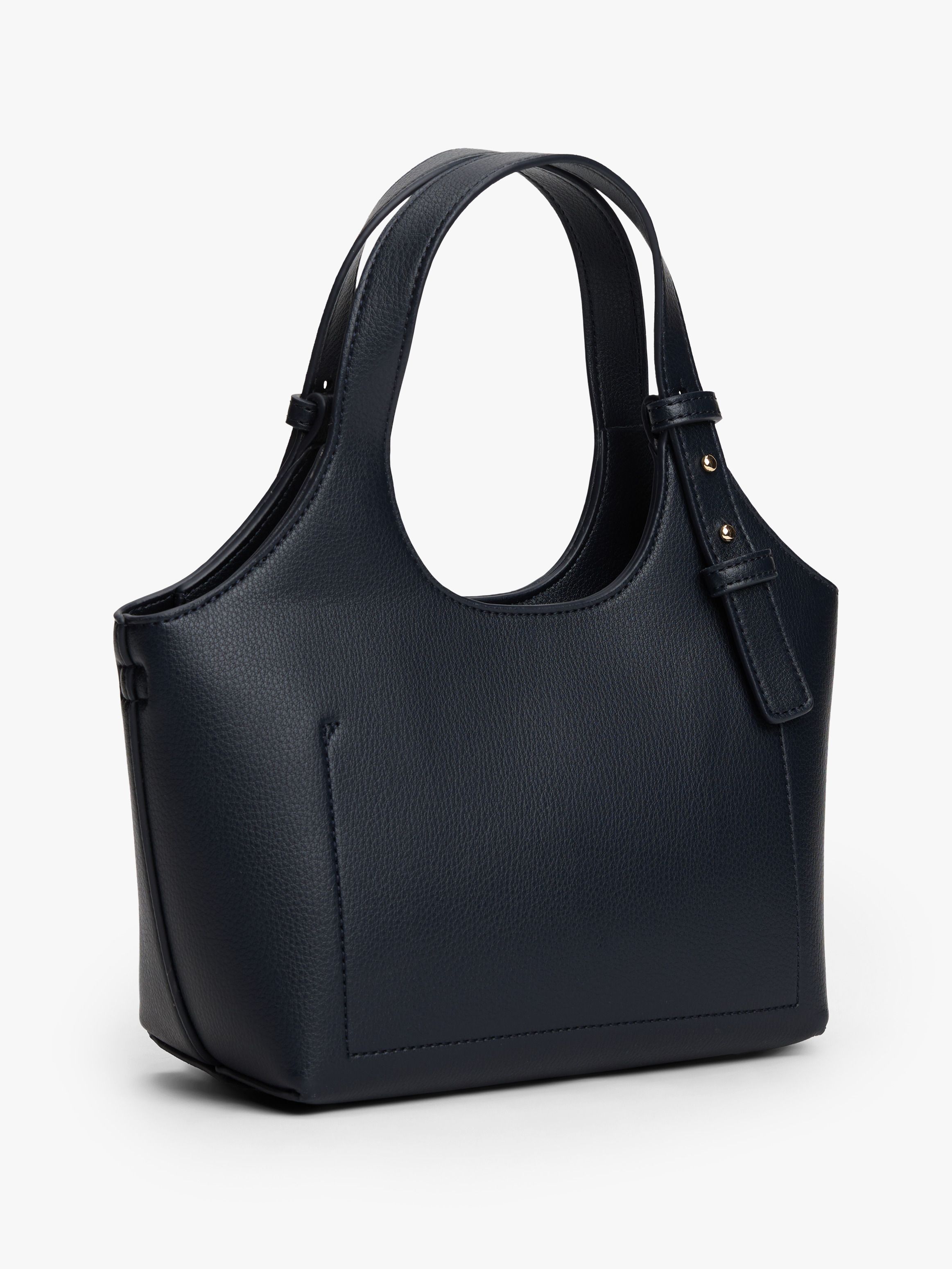 Elevate your everyday ensembles with this pebble-grain tote bag, complete with a metallic debossed logo and a removable shoulder strap.