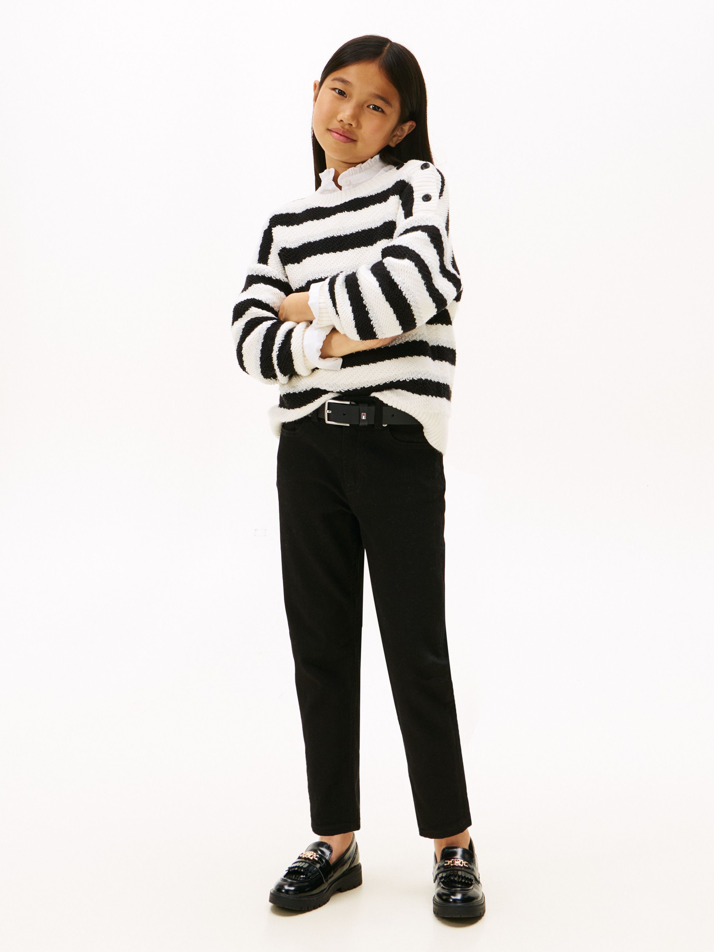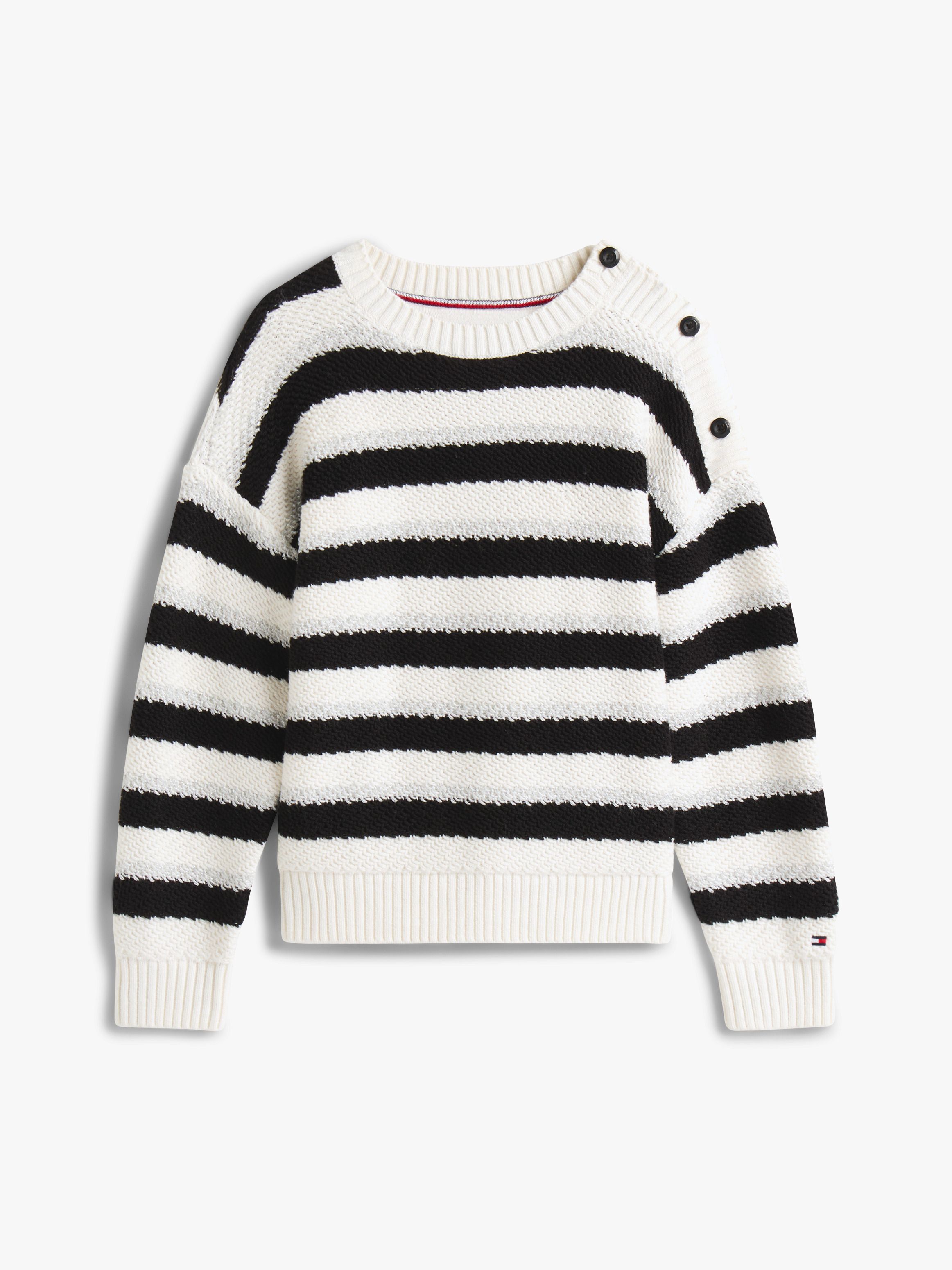 Shimmering metallic stripes bring a touch of glamour to this relaxed-fit jumper, making it an ideal piece for festive occasions.