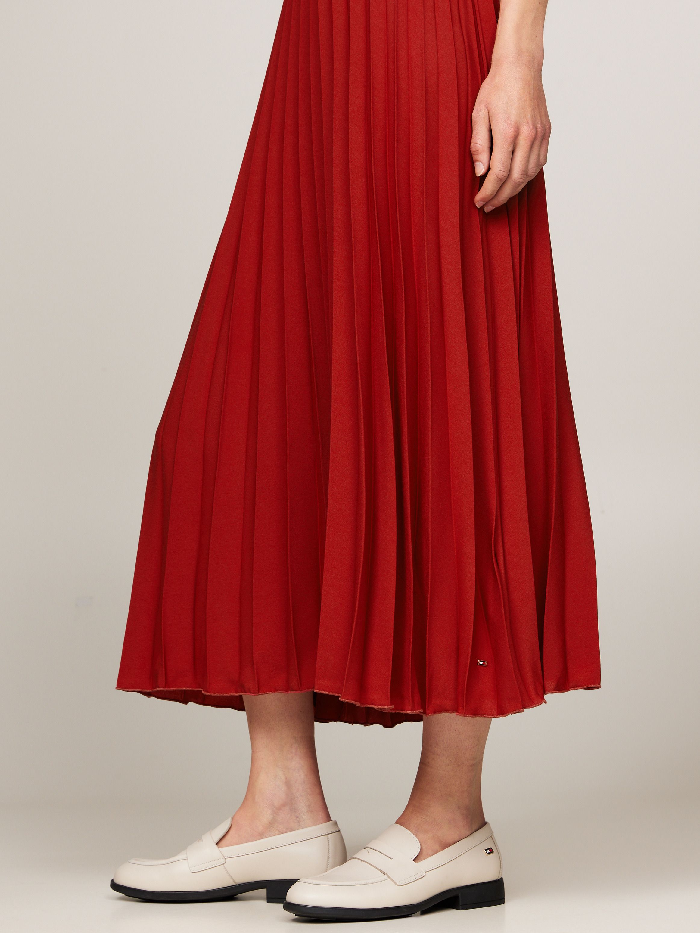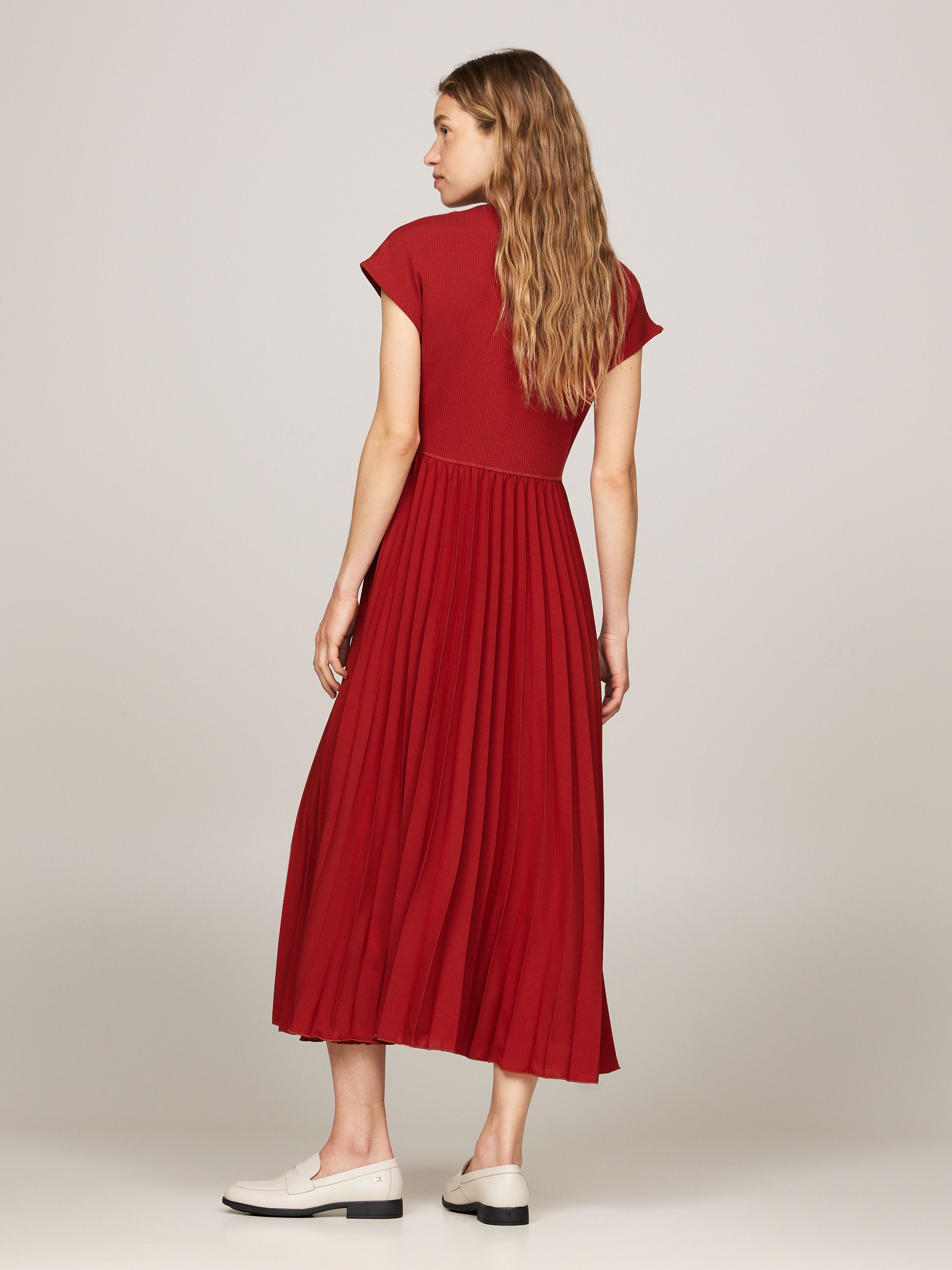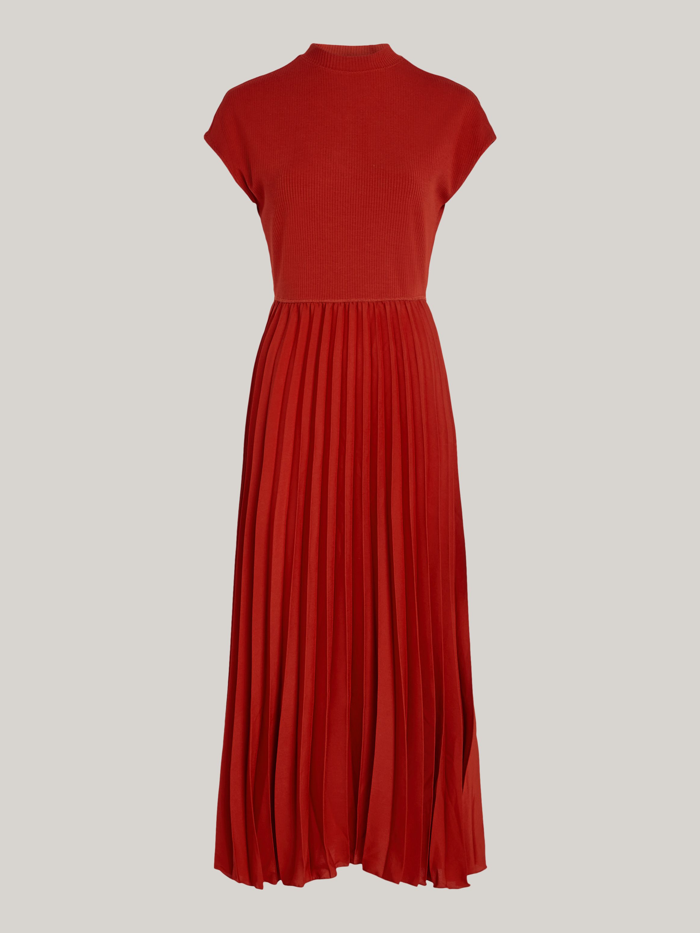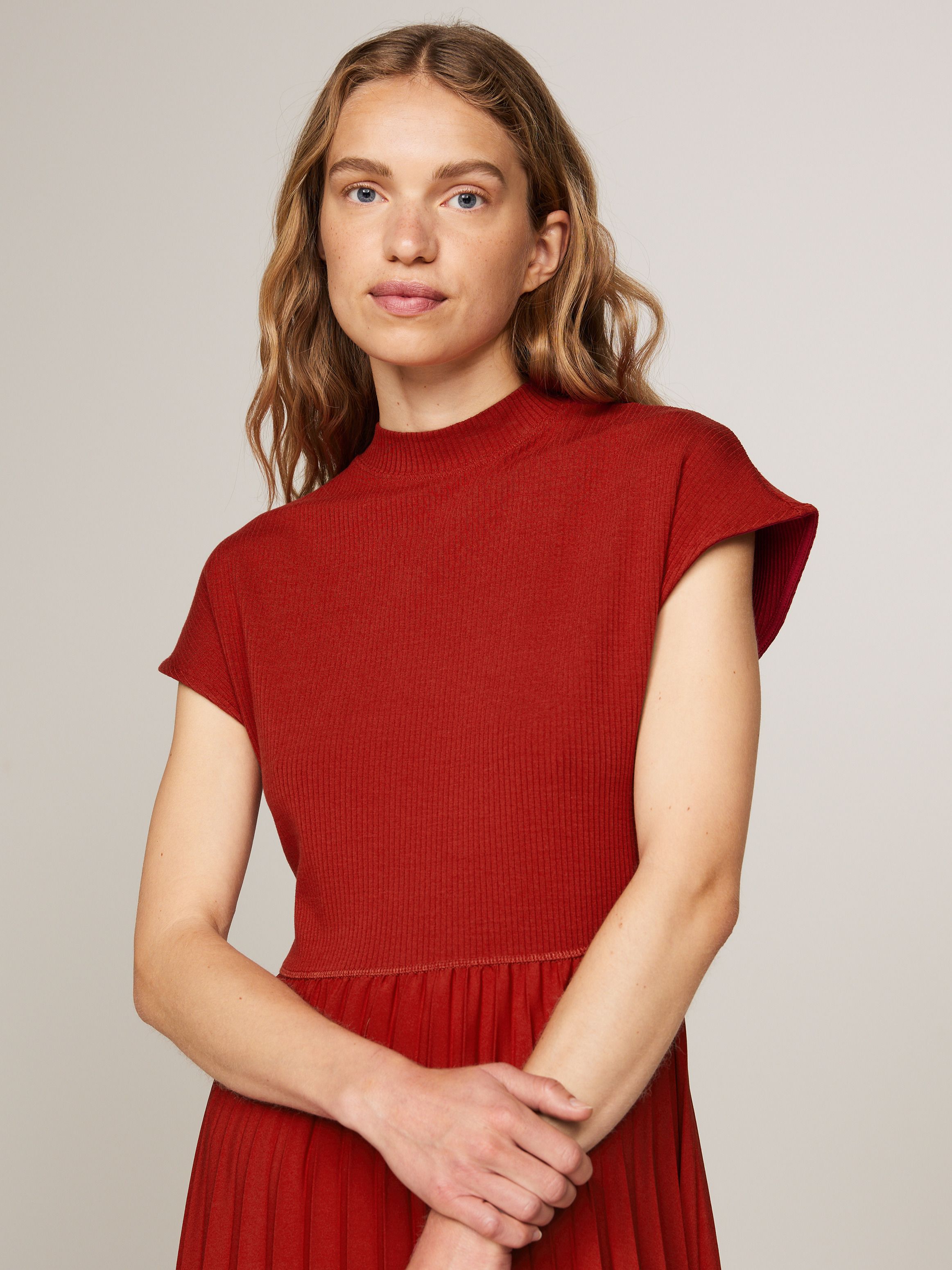 Elevate smart-casual looks with this flattering fit-and-flare dress, featuring a chic mock turtleneck and a flowing pleated skirt.