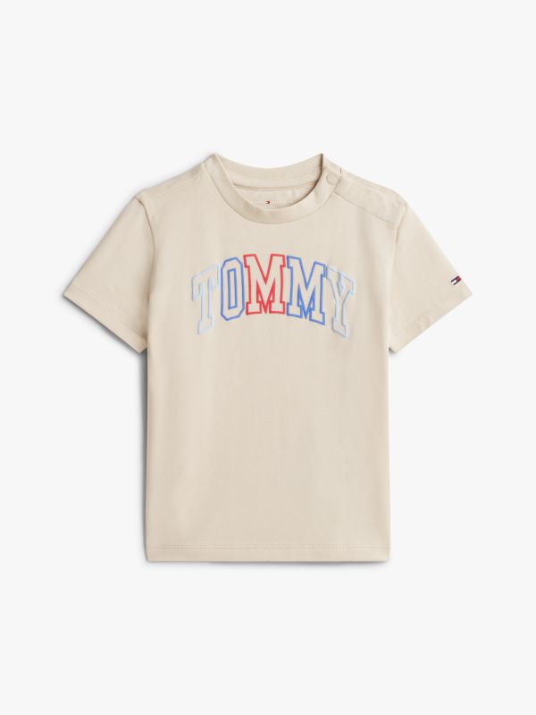 • Stretch cotton jersey • Crew neck • Snap-button closure on shoulder • Signature tape on side • Tommy Hilfiger outline logo on chest • Tommy Hilfiger branding • Tommy Hilfiger flag embroidery on sleeve