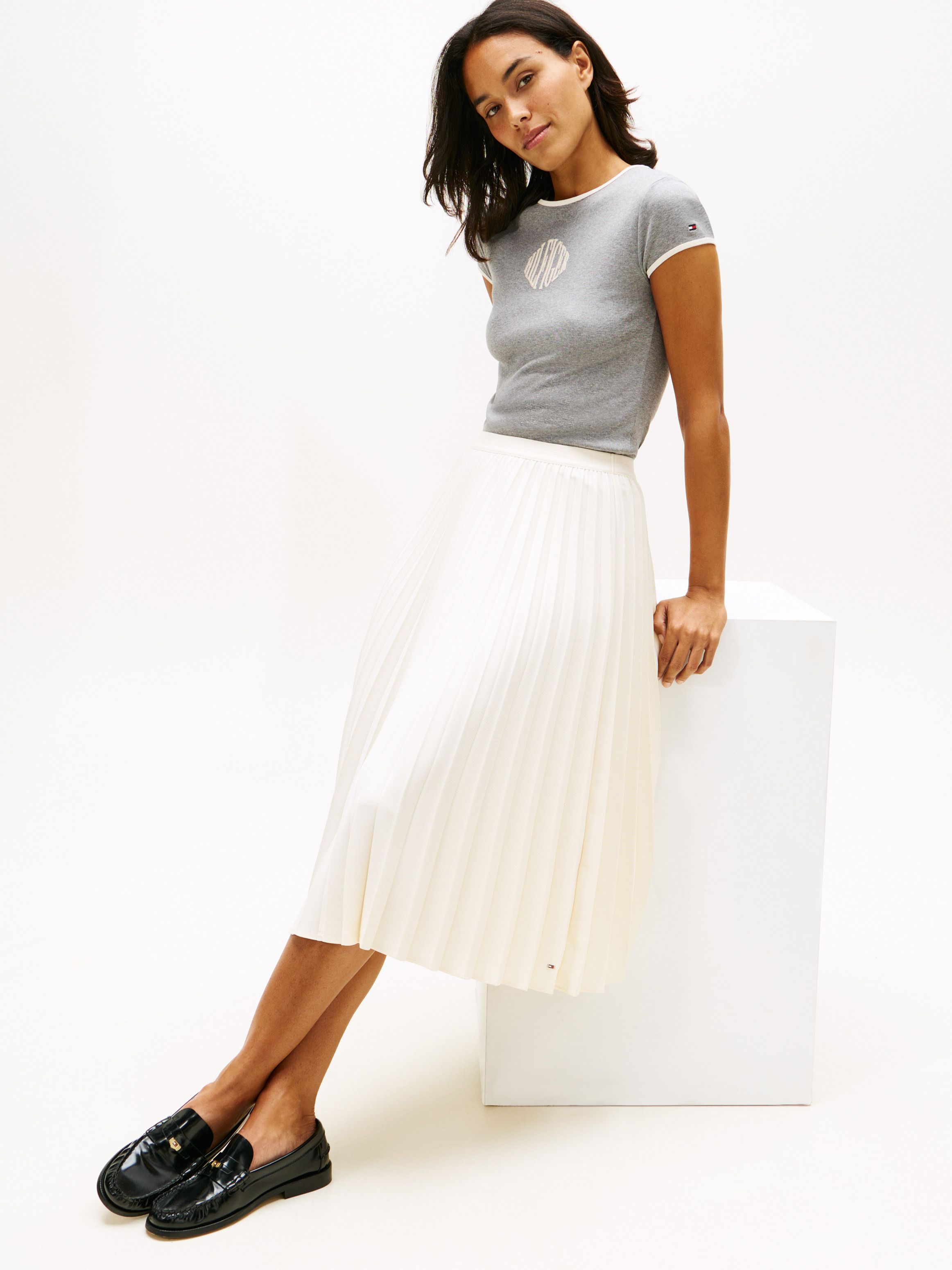 • Twill • All-over pleating • Elasticated waistband • Tommy Hilfiger repeat flag on waistband • Tommy Hilfiger branding • Tommy Hilfiger metal flag on hem