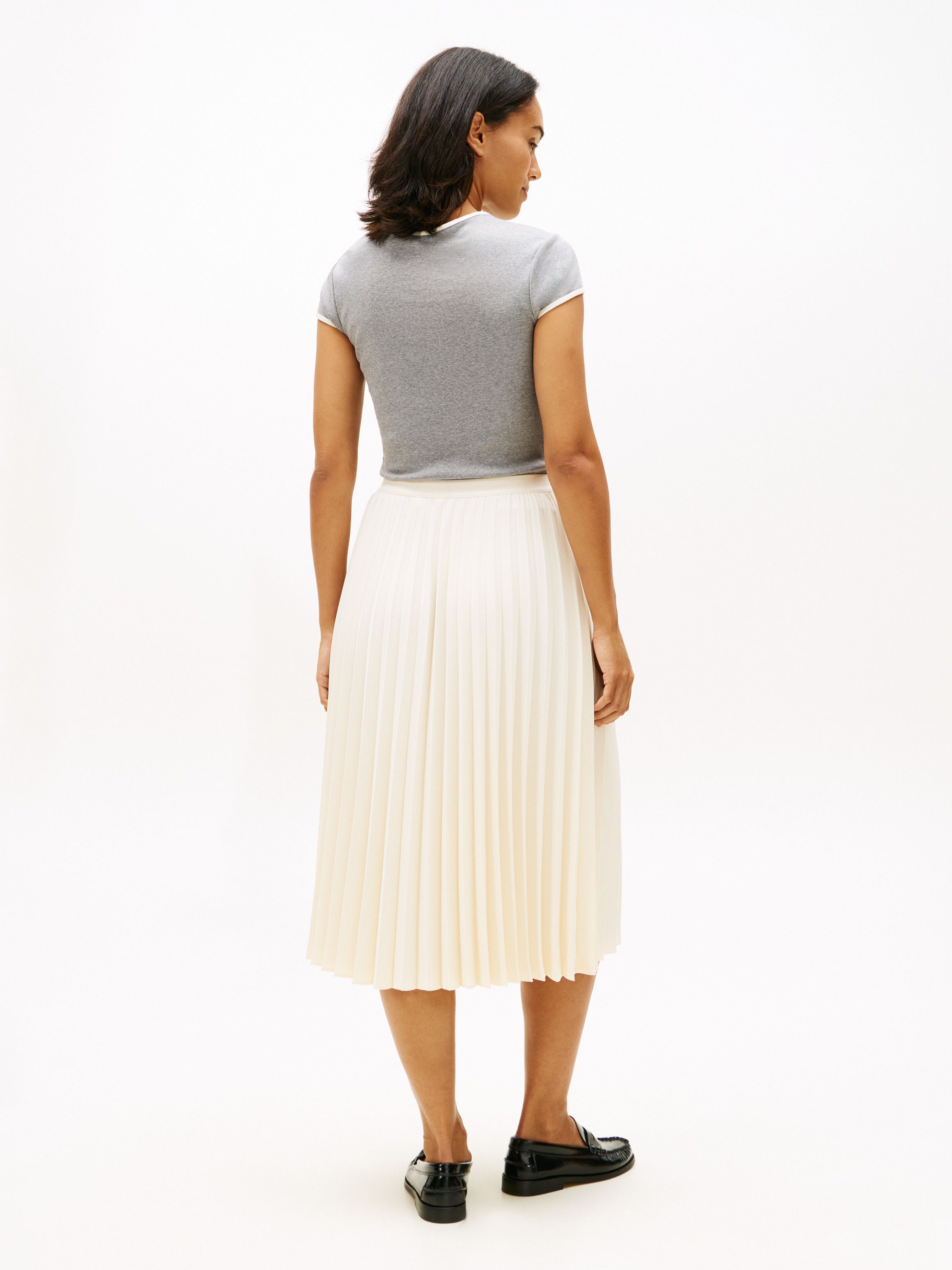 Seamlessly transition from day to evening in this twill midi skirt that combines an easy pull-on design with sharp, sophisticated pleats.