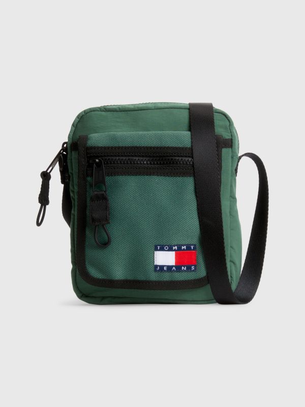 • Recycled nylon • Zip closure • Adjustable crossover strap • One front zipped pocket • One front flap pocket • Tommy badge on front • Tommy Jeans branding