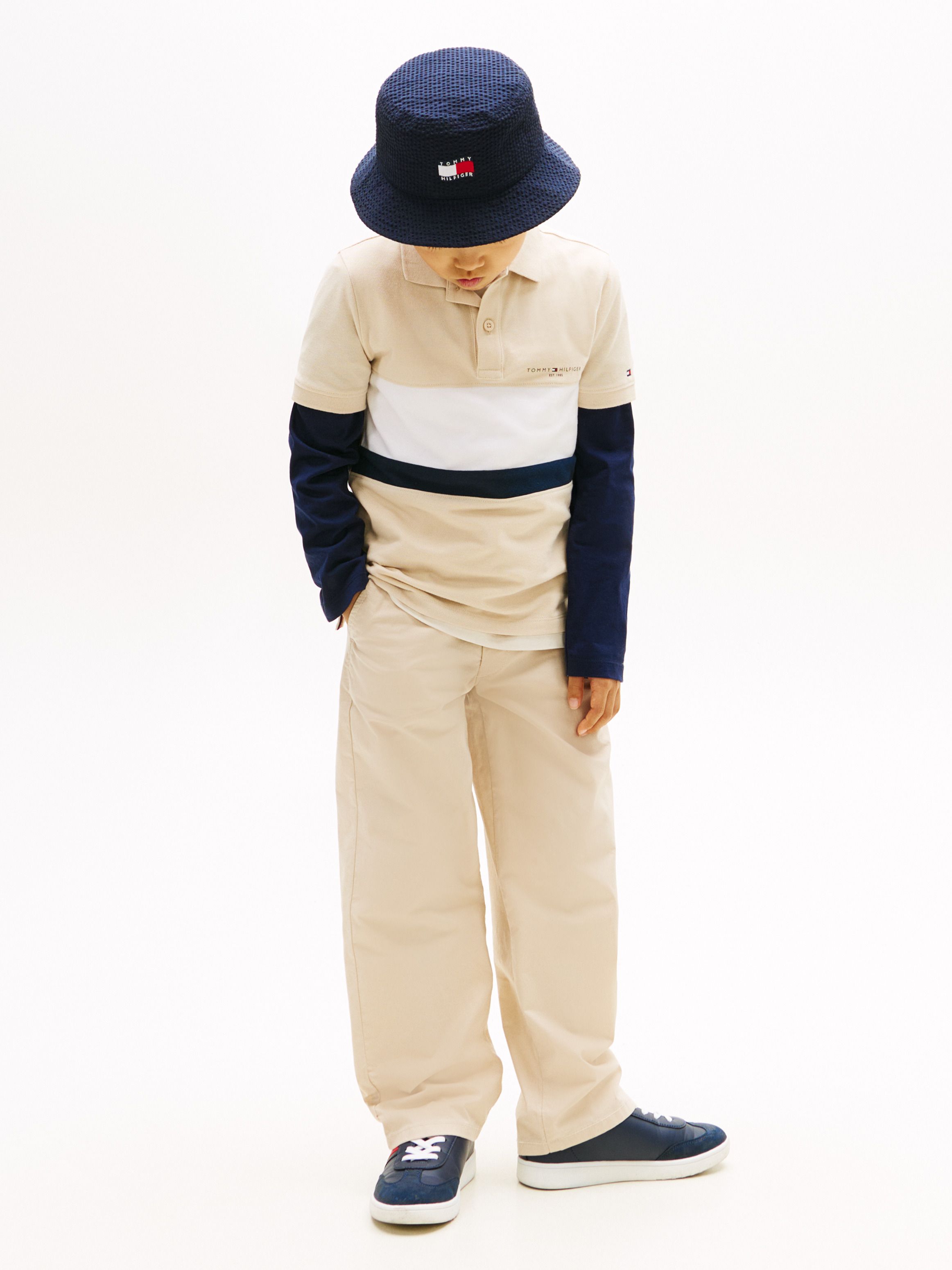 • Pure cotton pique • Colour-blocked design • Polo collar • Two-button placket • Rib-knit collar and cuffs • Signature tape inside neckline and back hem • Tommy Hilfiger logo on chest • Tommy Hilfiger branding • Tommy Hilfiger flag embroidery on sleeve