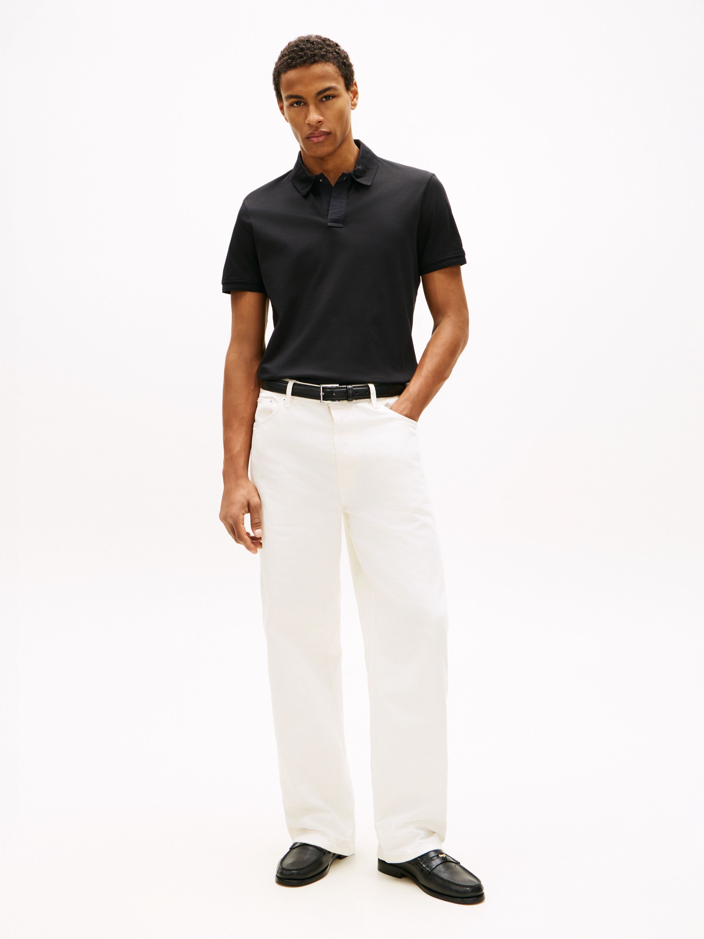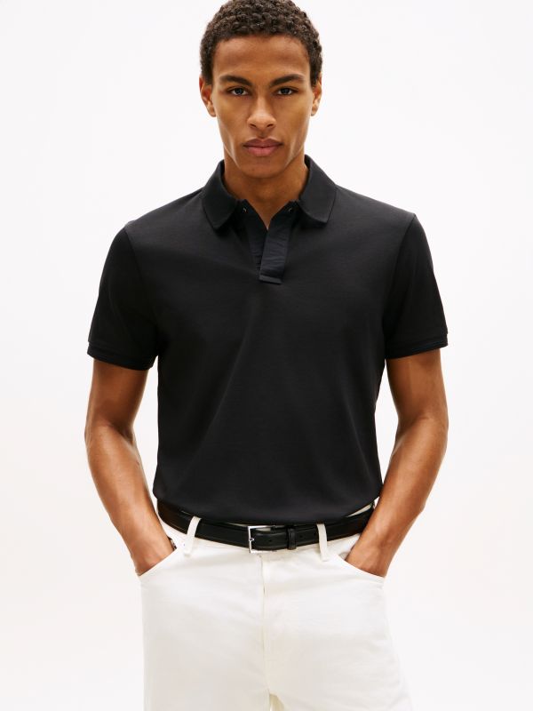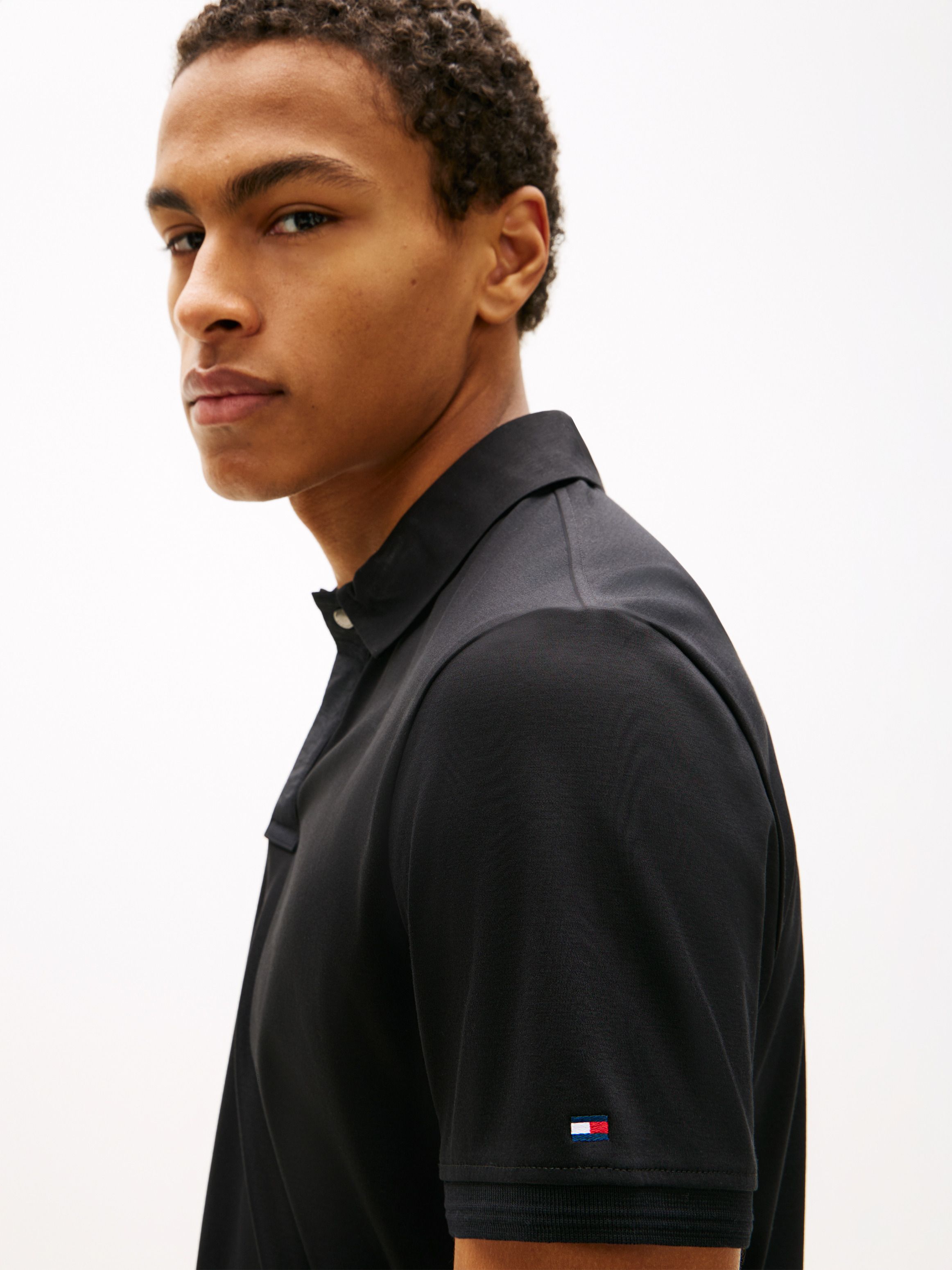 • Pure mercerised cotton • Polo collar • Concealed placket with top snap-button fastening • Signature tape inside neckline • Tommy Hilfiger branding • Tommy Hilfiger flag embroidery on sleeve