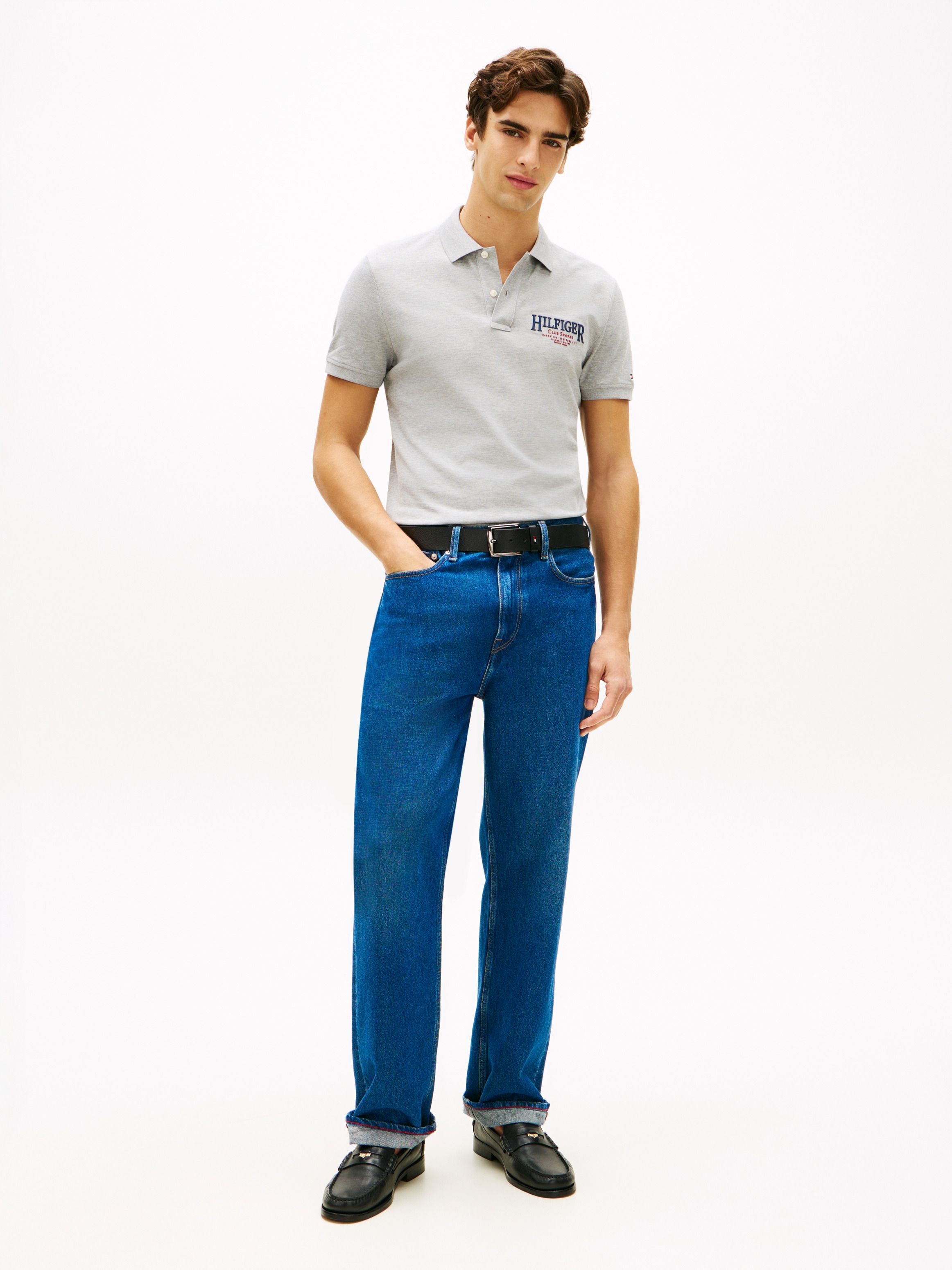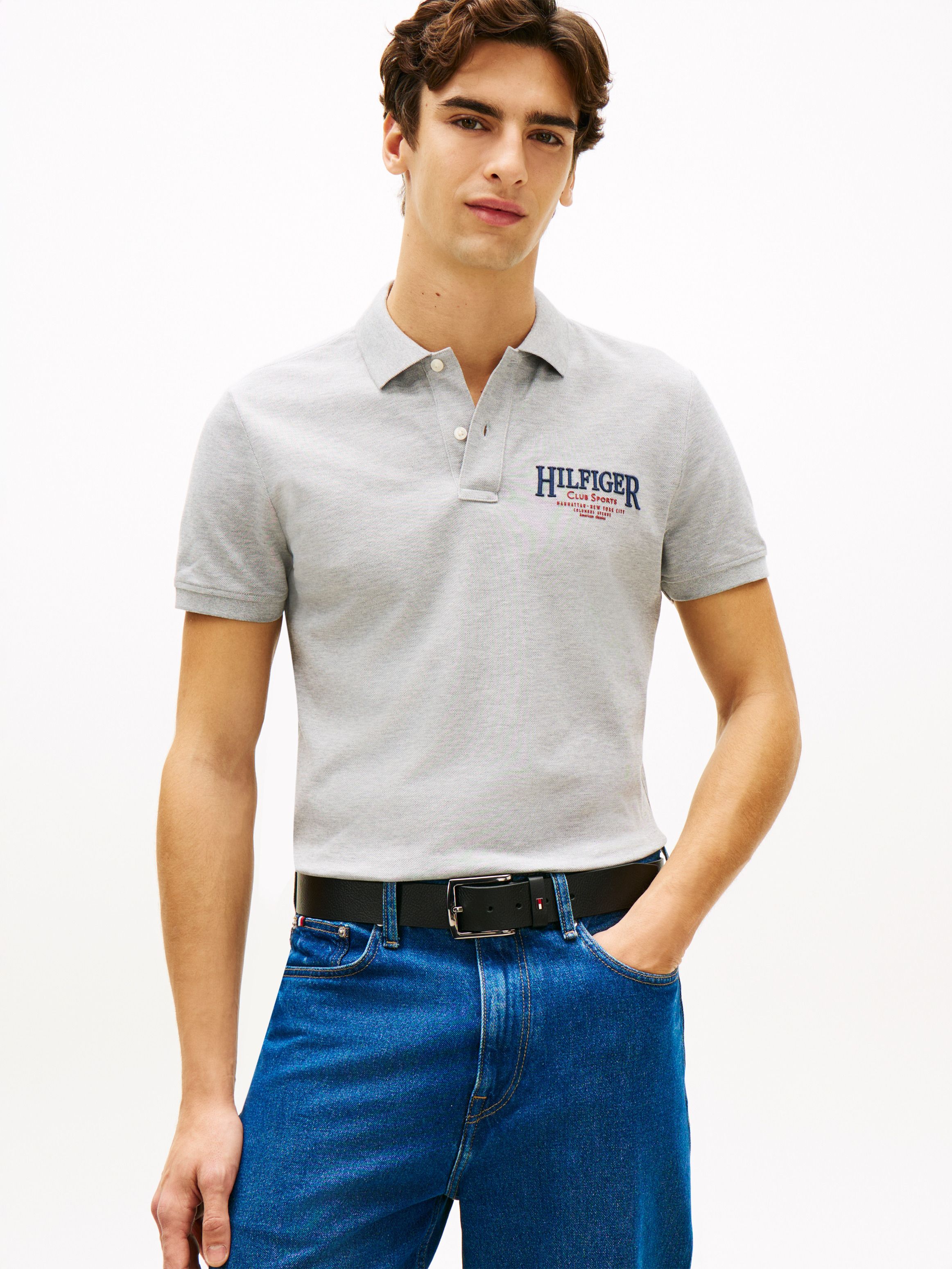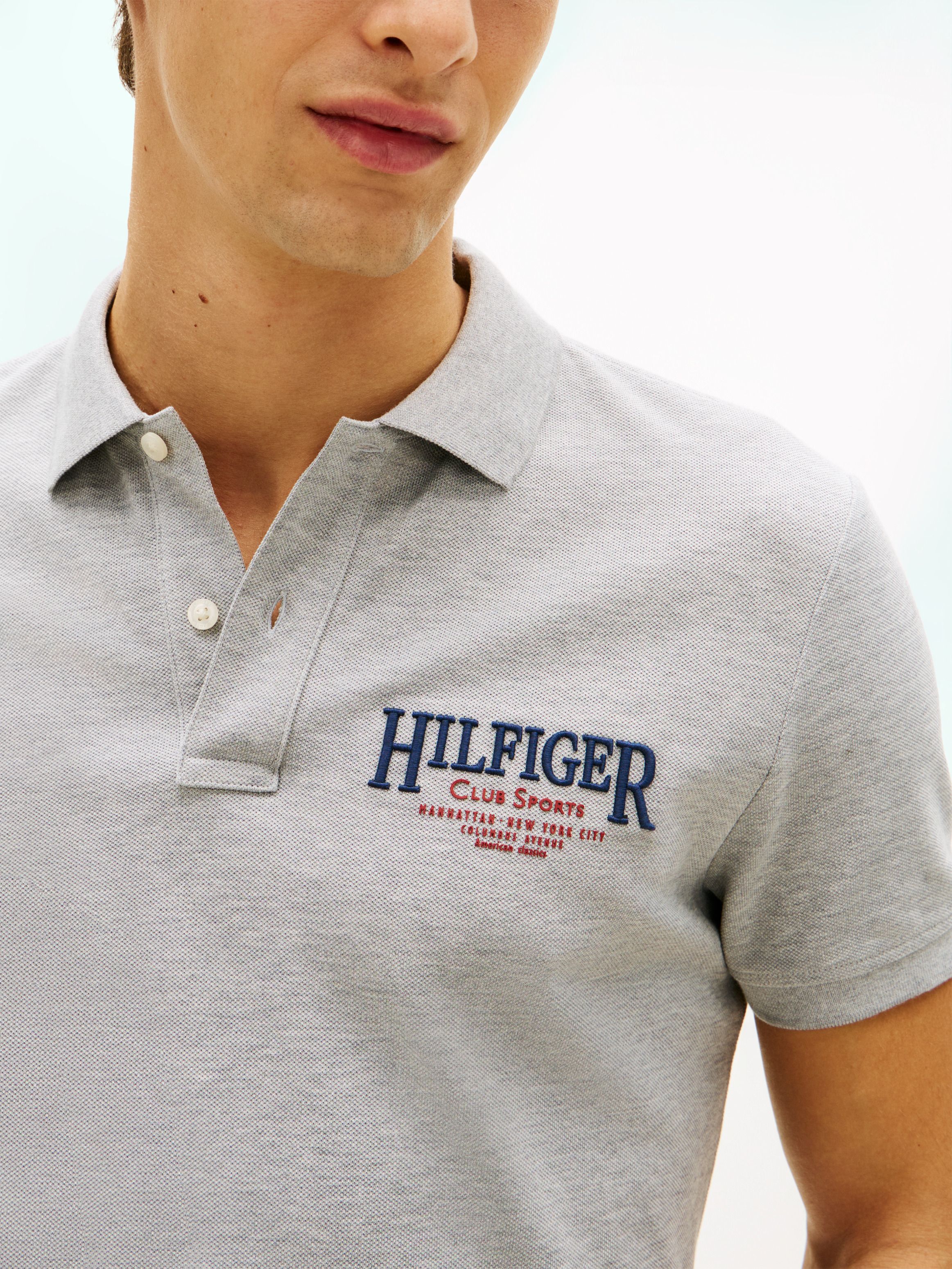 • Stretch cotton pique • Polo collar • Two-button placket • Signature tape inside neckline • Tommy Hilfiger NYC logo on chest • Tommy Hilfiger branding • Tommy Hilfiger flag embroidery on sleeve
