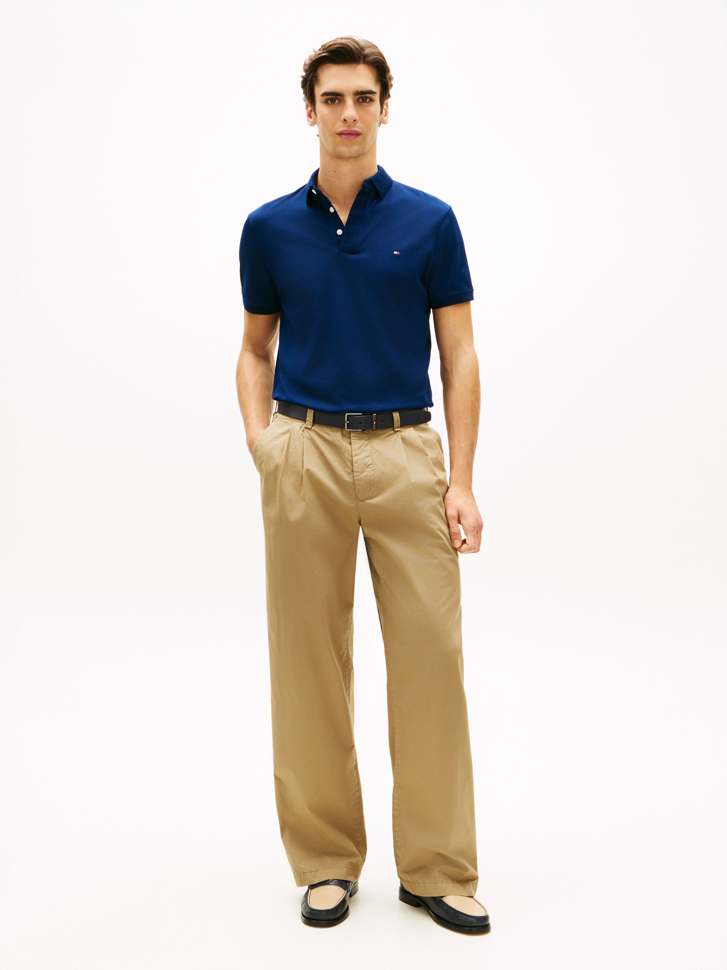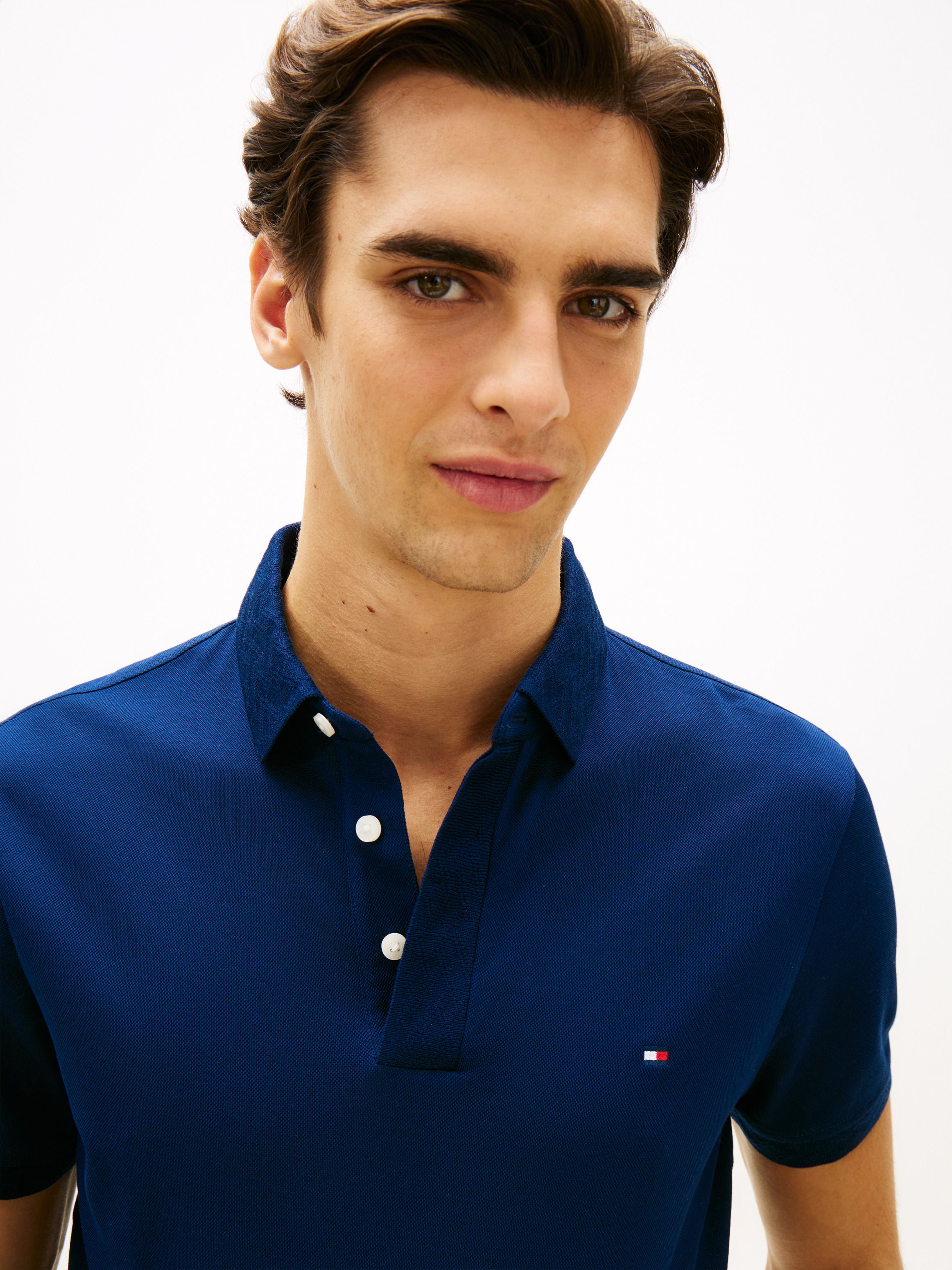 • Pure mercerised cotton pique • All-over jacquard flag on collar and placket • Polo collar • Concealed placket • Signature tape inside neckline • Tommy Hilfiger branding • Tommy Hilfiger flag embroidery on chest