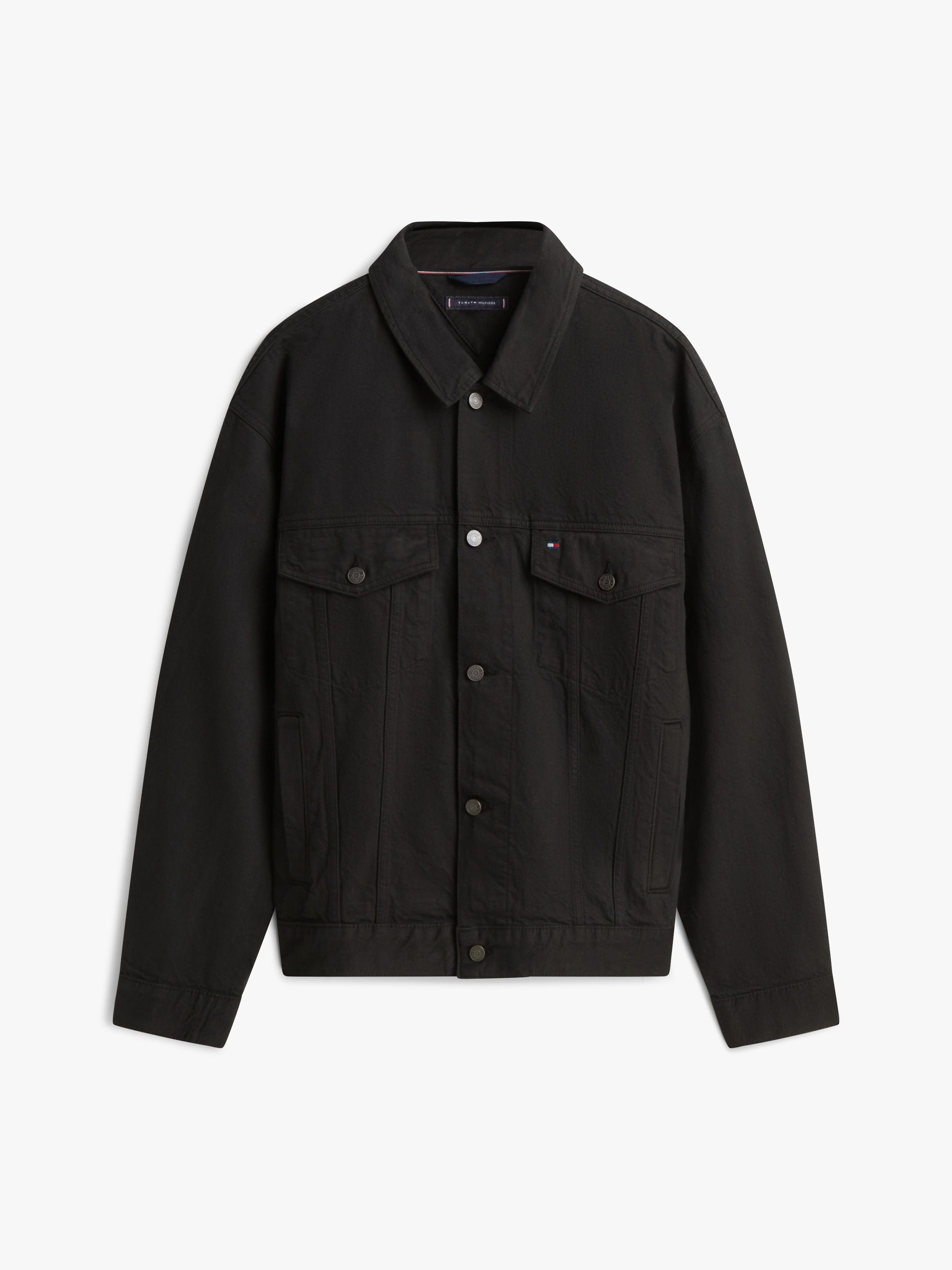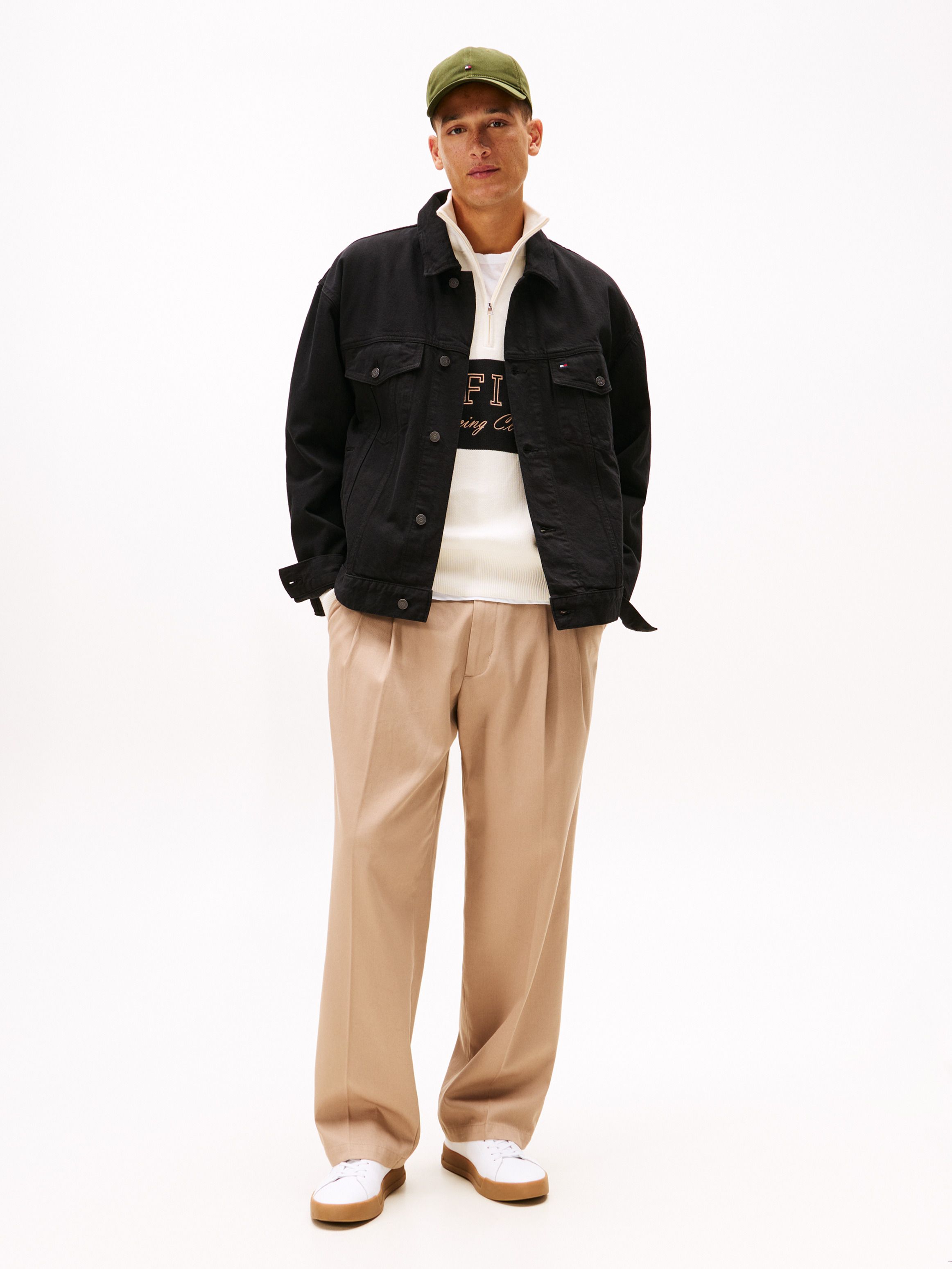 Bring a utility-inspired look to your outfits with this garment-dyed trucker jacket, cut in a relaxed fit with adjustable waist tabs.