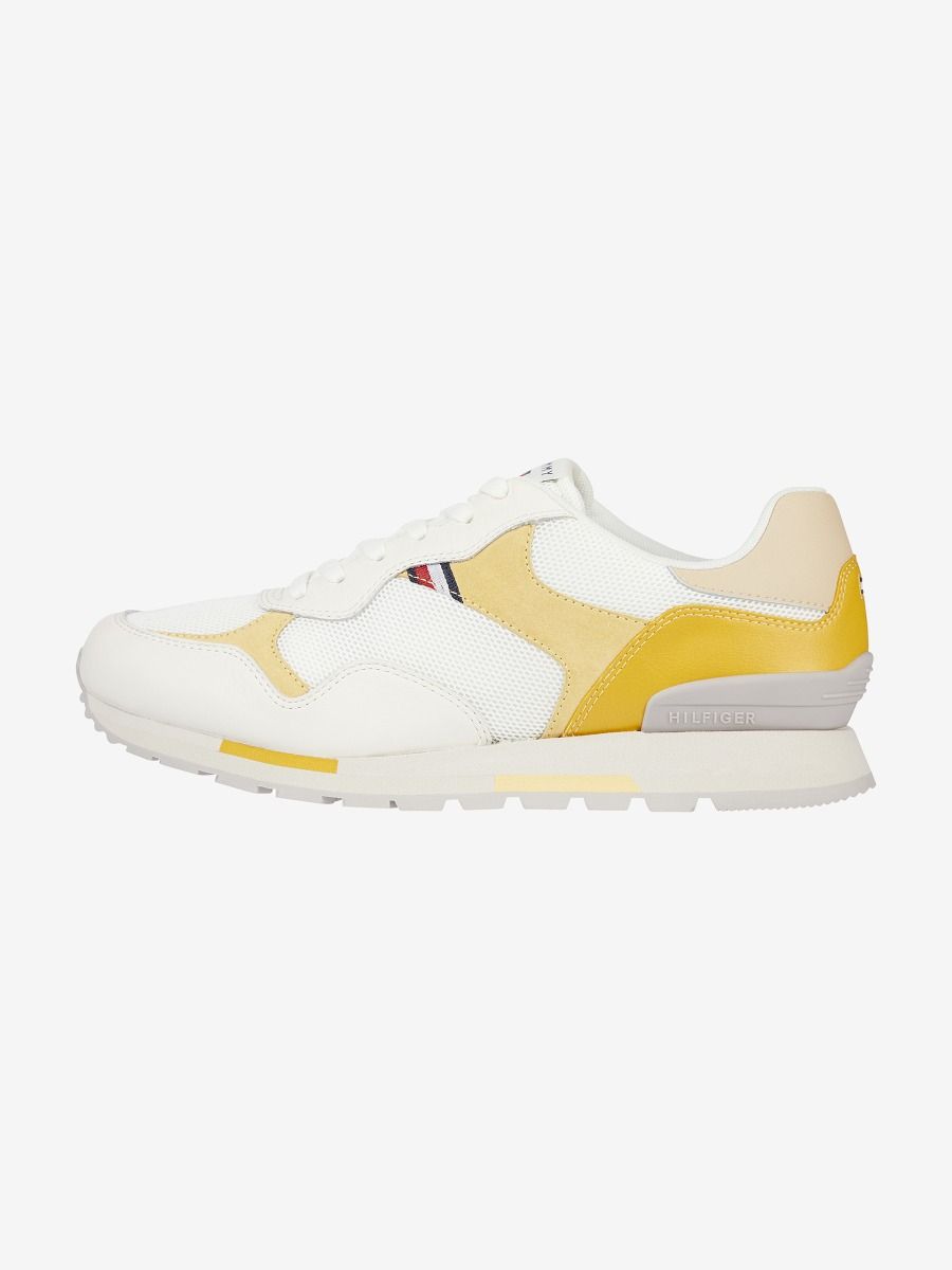 These trainers stand out for their uppers in a statement colour and texture mix, as well as their flashes of signature branding.