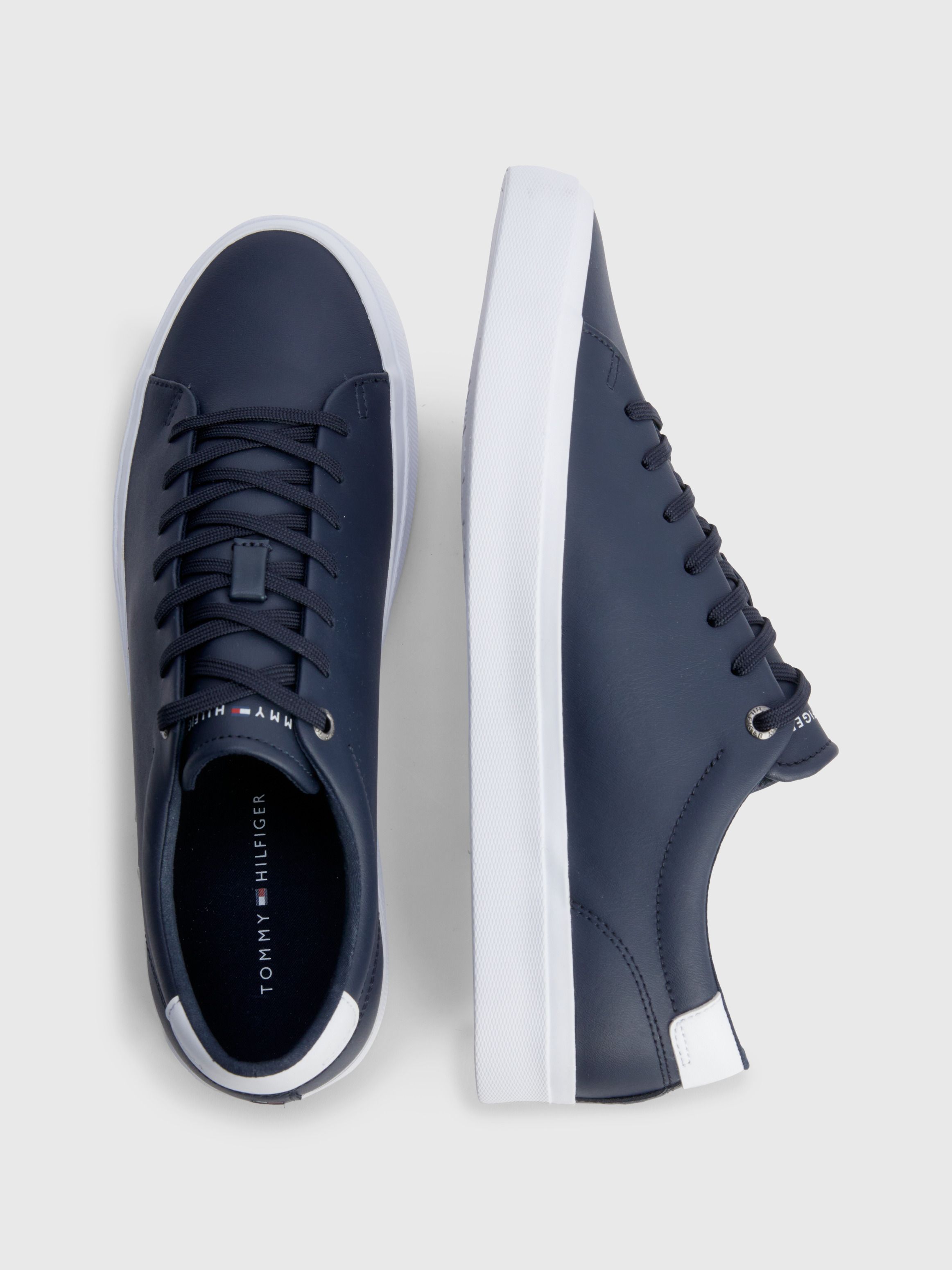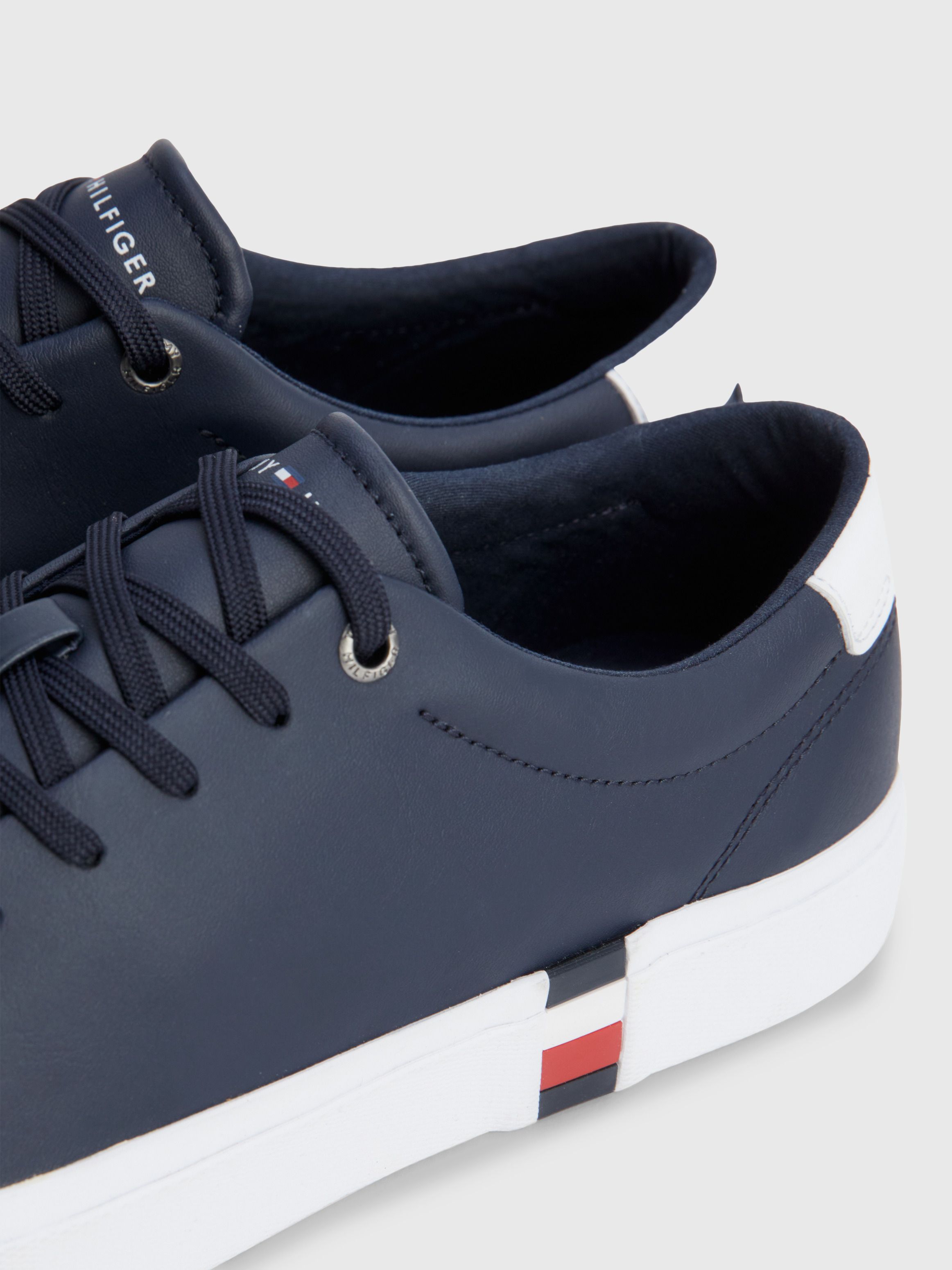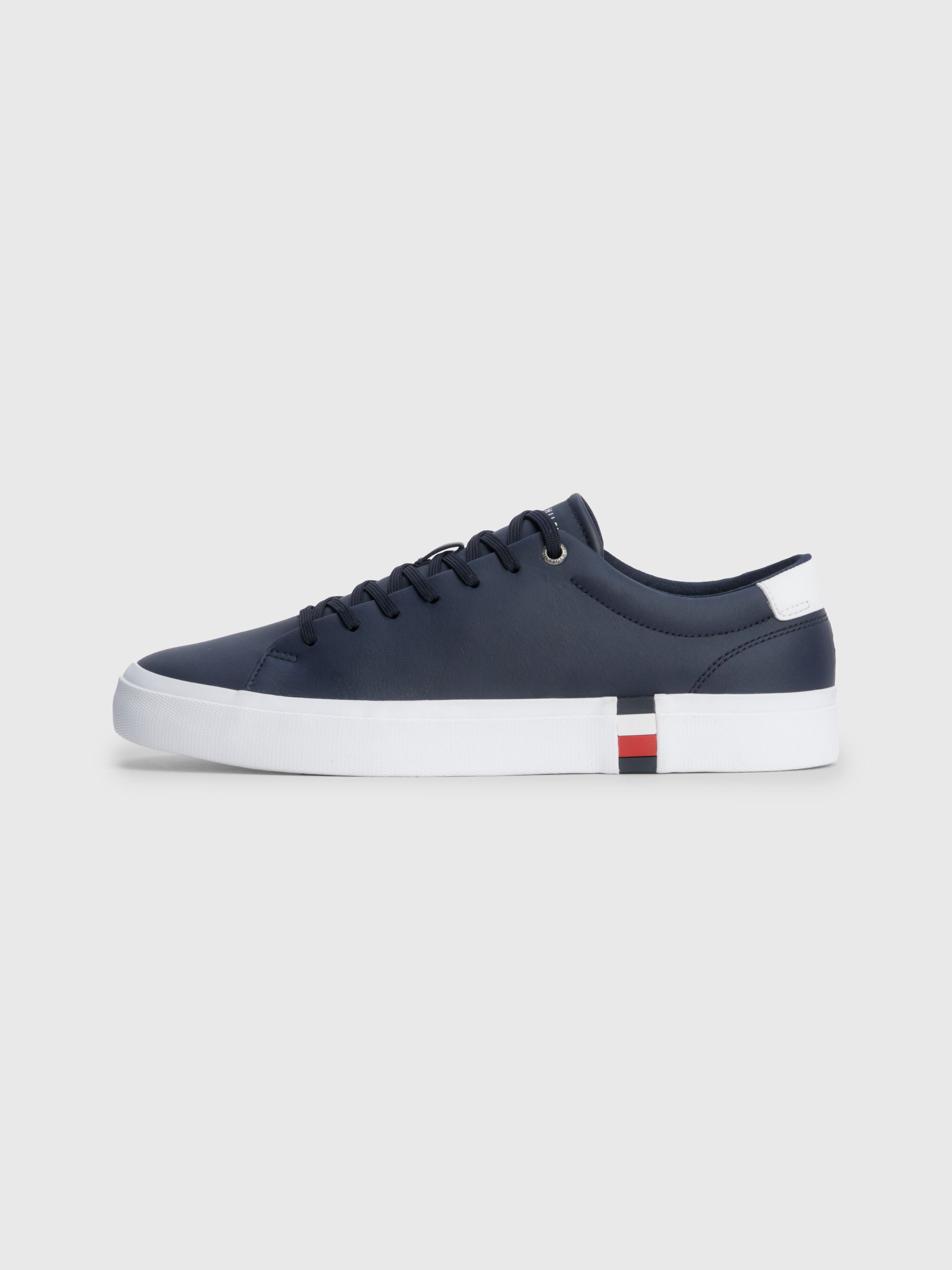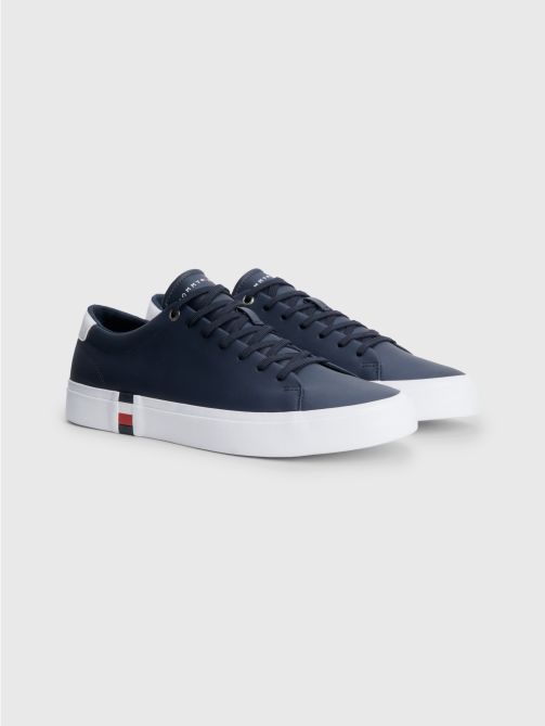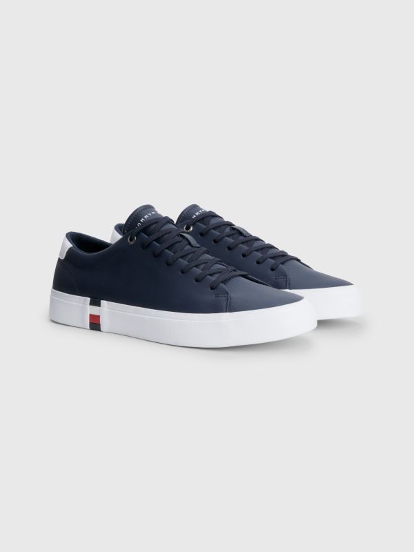 Go for a luxe look with these coated leather low-top trainers punctuated with signature detailing on the midsole and metallic branding.