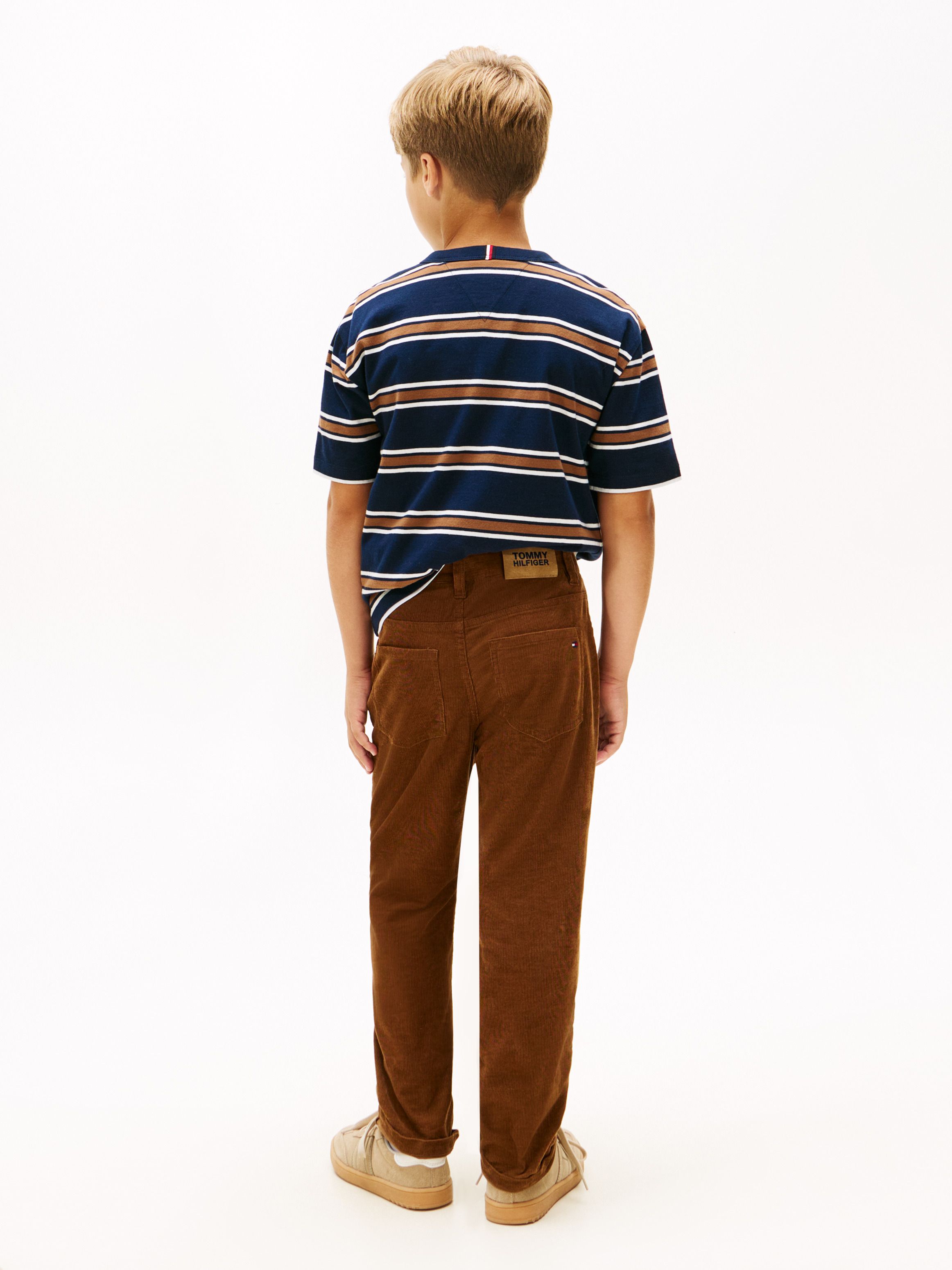 • Pure cotton corduroy • Zip with button closure • Five-pocket styling • Tommy Hilfiger branding • Tommy Hilfiger flag embroidery on coin and back pockets