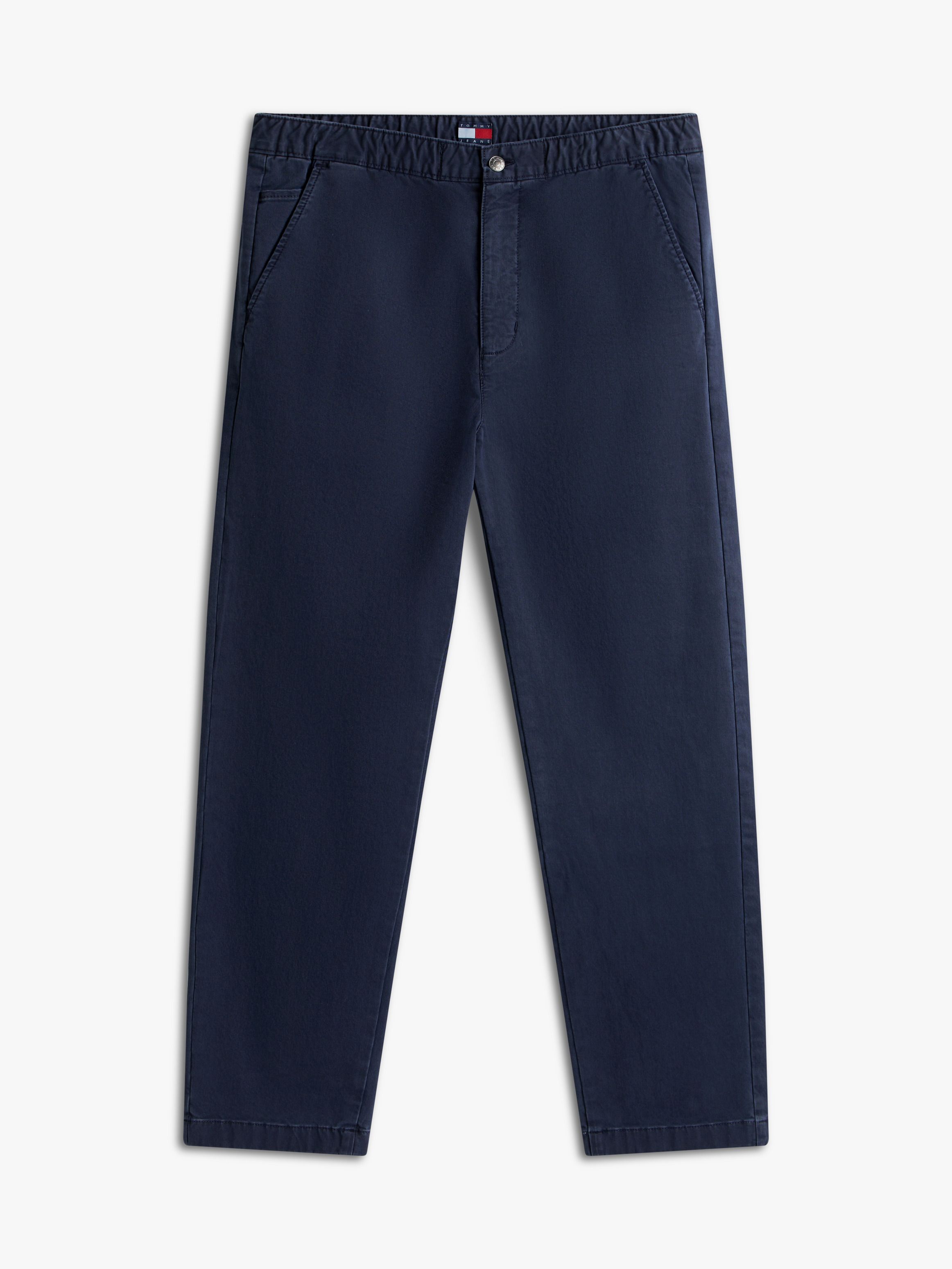 • Stretch peached cotton twill • Zip with button closure • Two waist angled slip pockets • Two back welt pockets • Tommy badge on back • Tommy Jeans branding