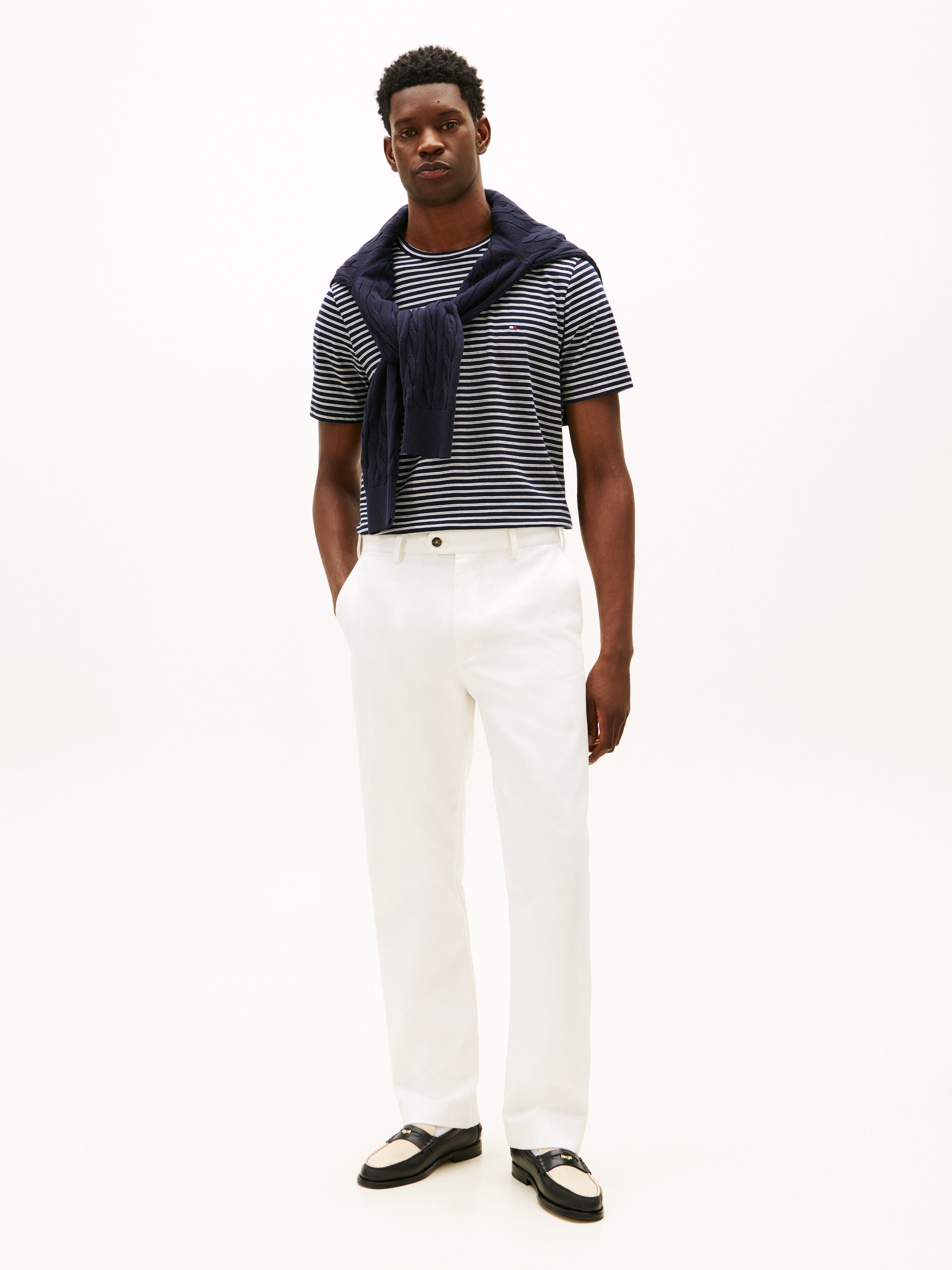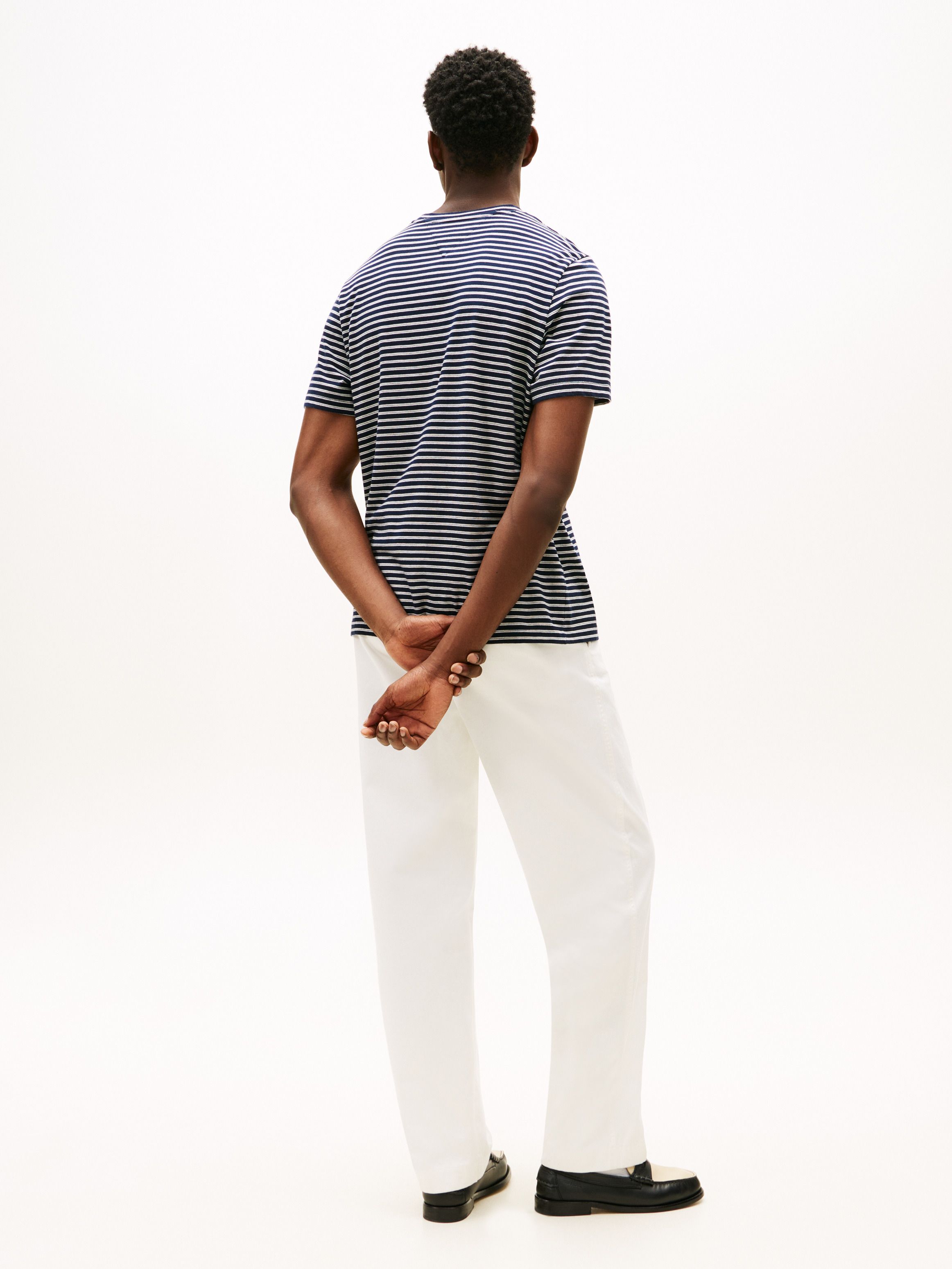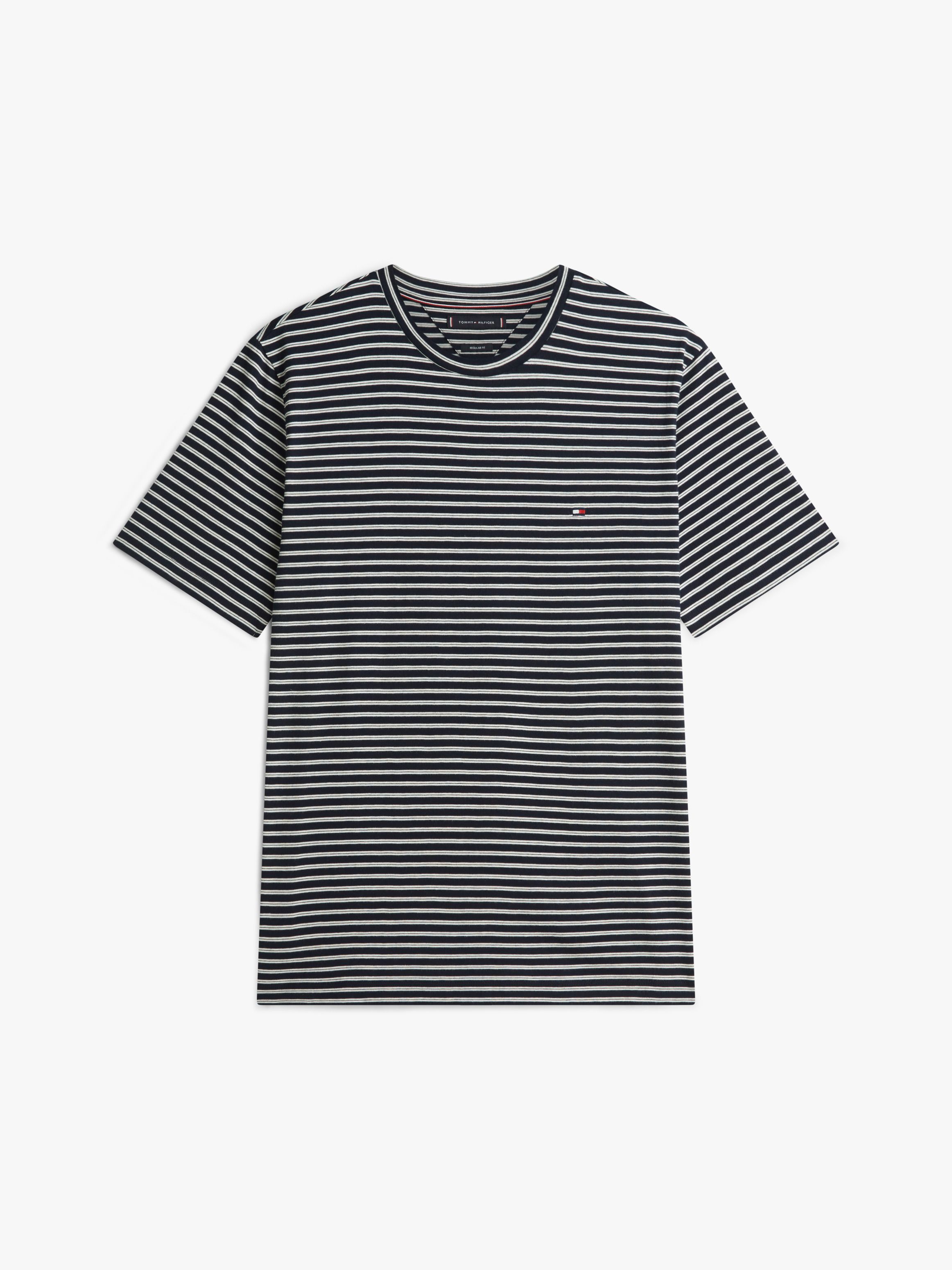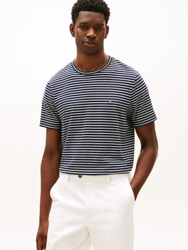 • Pure cotton jersey • All-over horizontal stripe • Crew neck • Signature tape inside neckline • Tommy Hilfiger branding • Tommy Hilfiger flag embroidery on chest