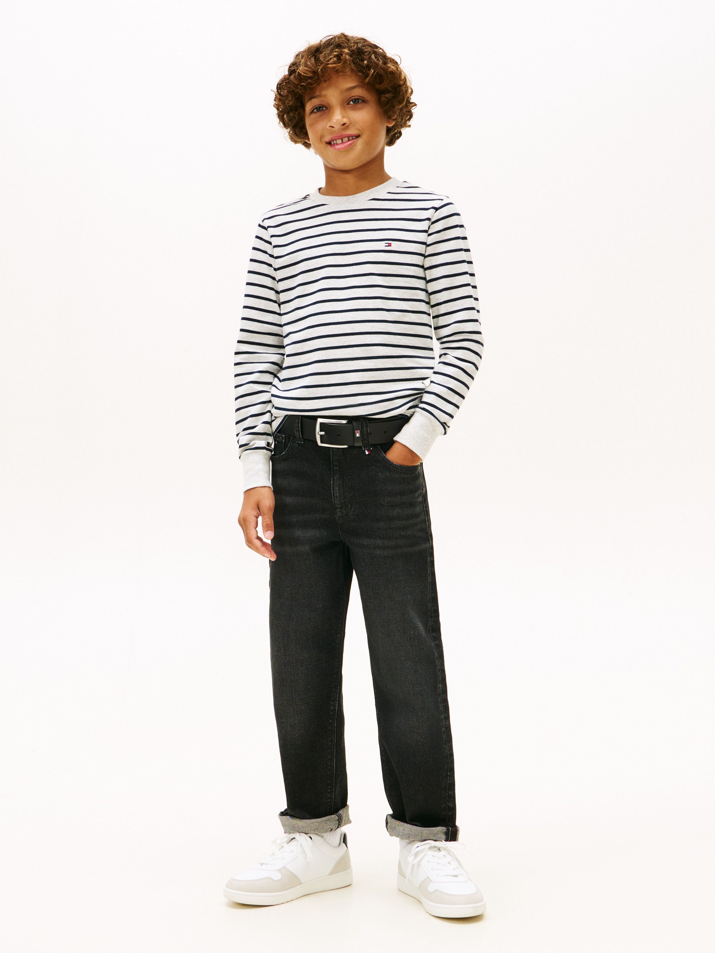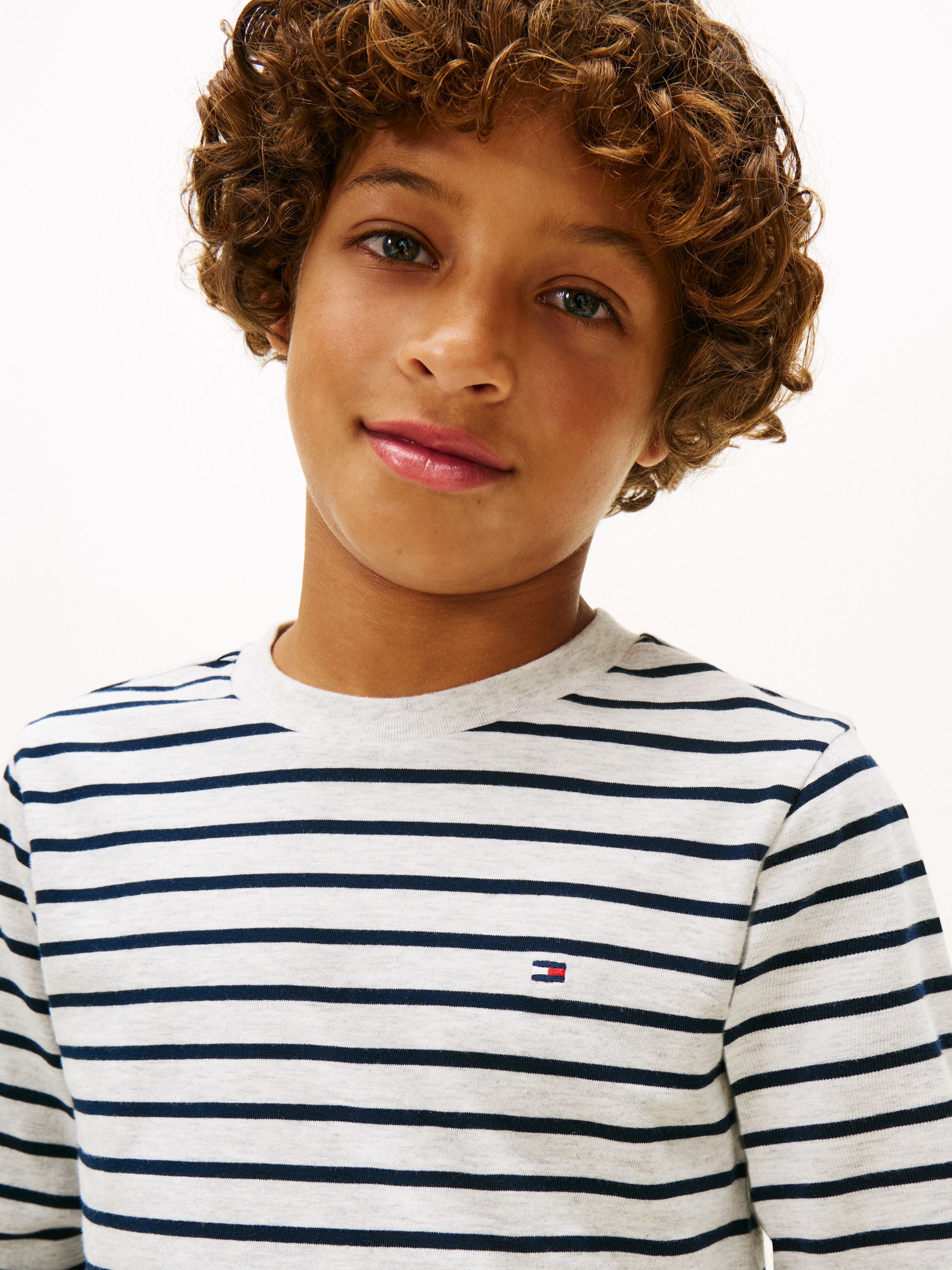 This pure cotton jersey T-shirt features a classic horizontal stripe design and comes with long sleeves, making it a great transitional piece.