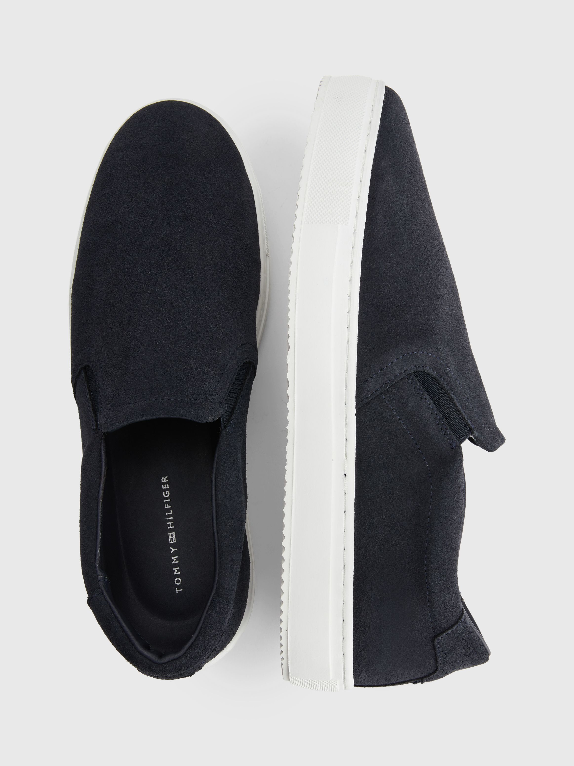 • Suede upper • Elasticated side panels • Leather lining • Recycled polyurethane and polyurethane insock • Natural rubber outsole • Cupsole • Tommy Hilfiger logo debossed on side • Tommy Hilfiger branding • Tommy Hilfiger flag at back