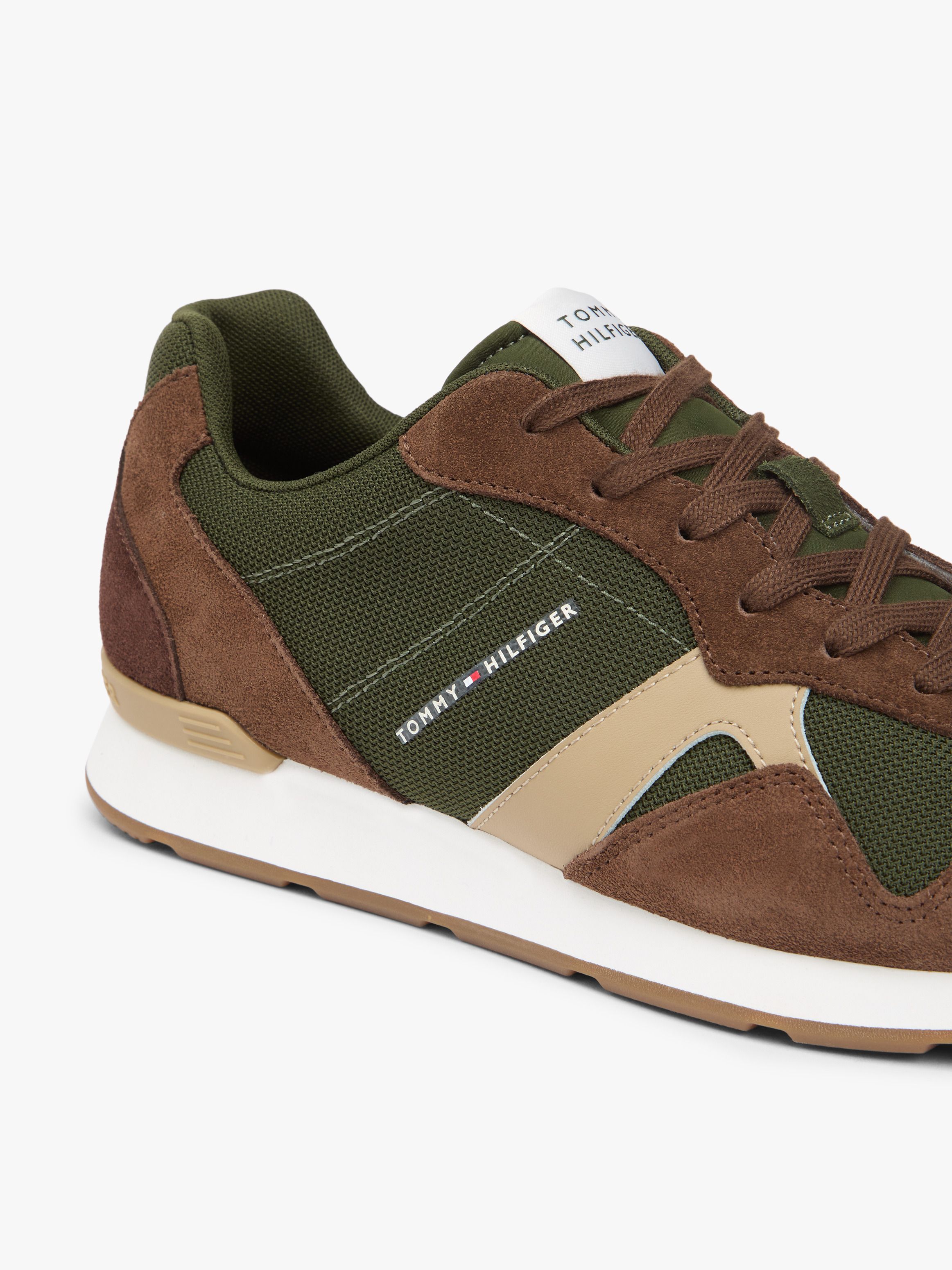 • Suede upper • Polyester lining • Polyurethane, other textiles and thermoplastic rubber removable insock • Rubber outsole • Mixed texture panels • Tommy Hilfiger logo on side and tongue • Tommy Hilfiger logo embossed on heel • Tommy Hilfiger branding