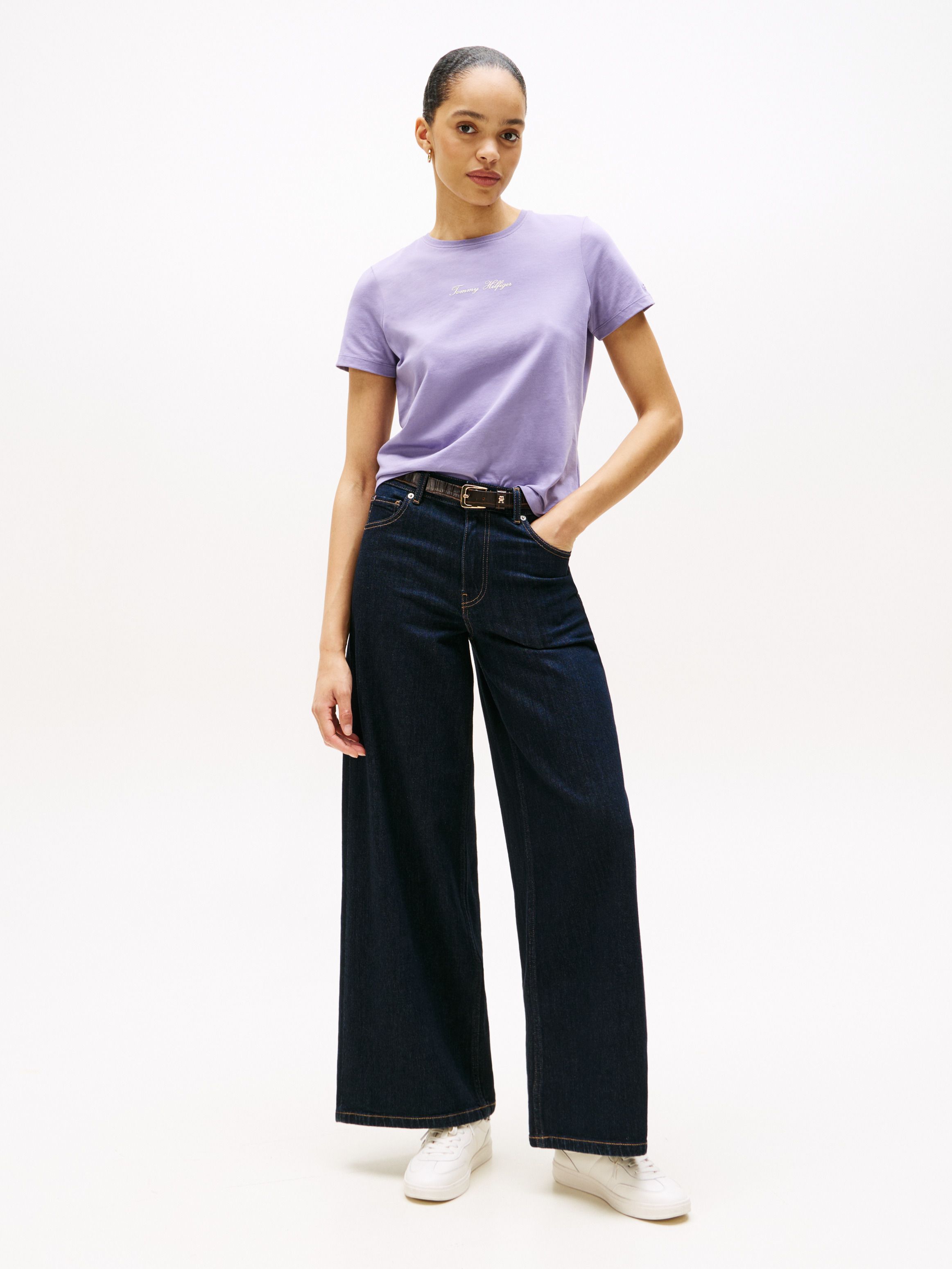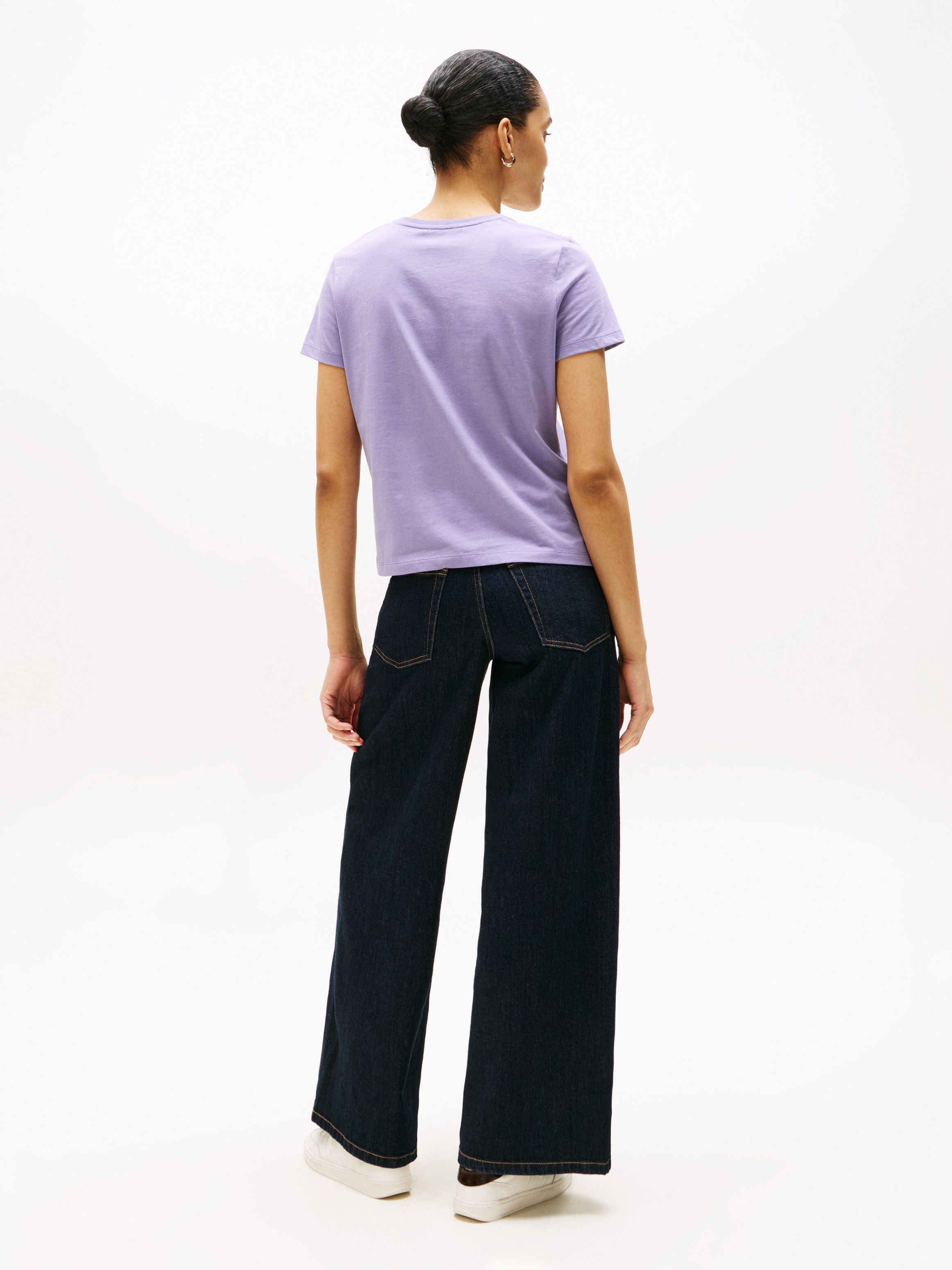 • Pure cotton jersey • Crew neck • Signature tape inside neckline • Tommy Hilfiger textured script logo on chest • Tommy Hilfiger branding • Tommy Hilfiger flag embroidery on sleeve