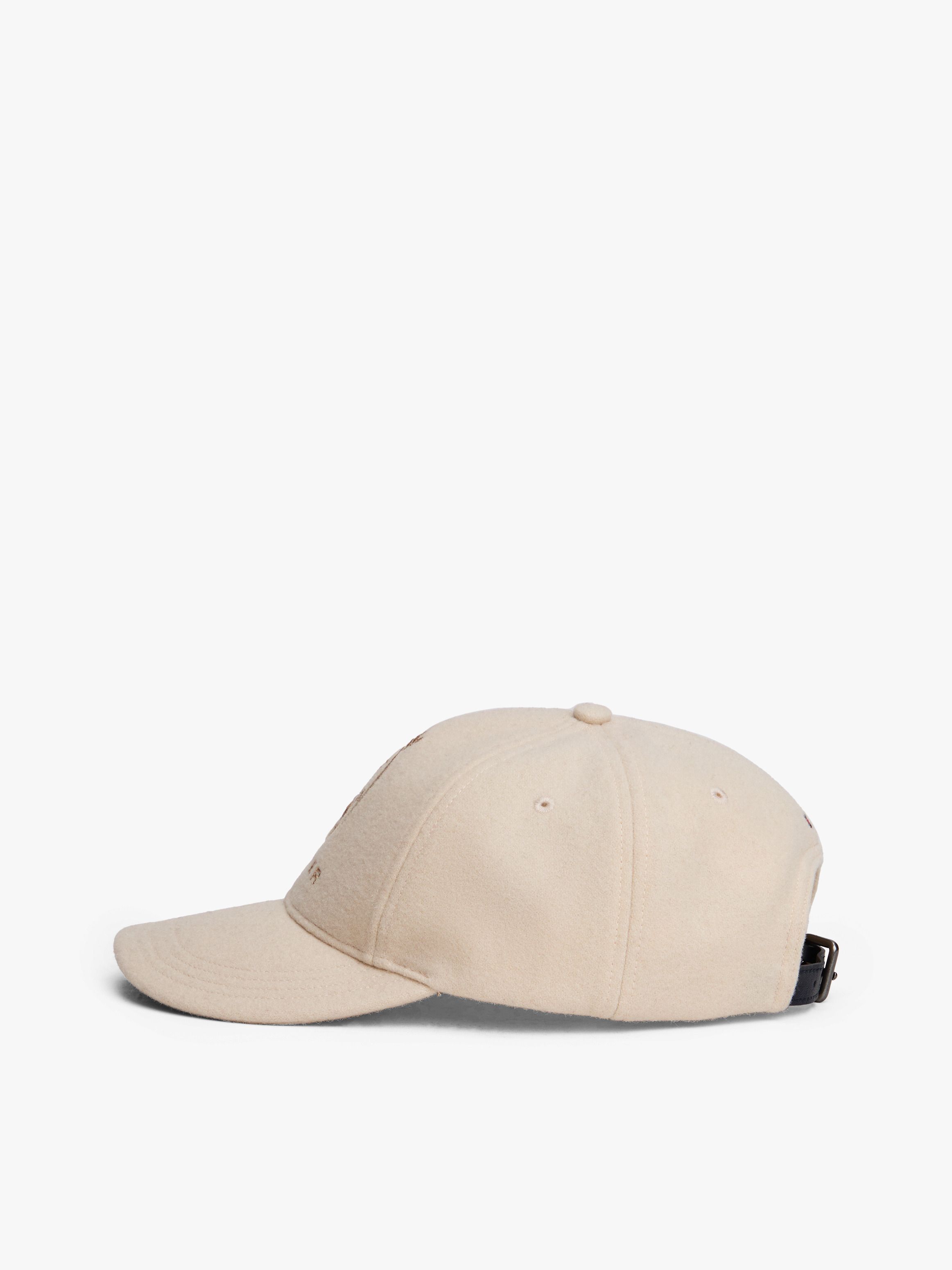 • Pure wool • Six-panel design • Button on crown • Ventilation eyelets • Textured stitching on brim • Buckle adjuster on back • Tonal TH crest embroidery on front • Tommy Hilfiger branding • Tommy Hilfiger flag embroidery on back