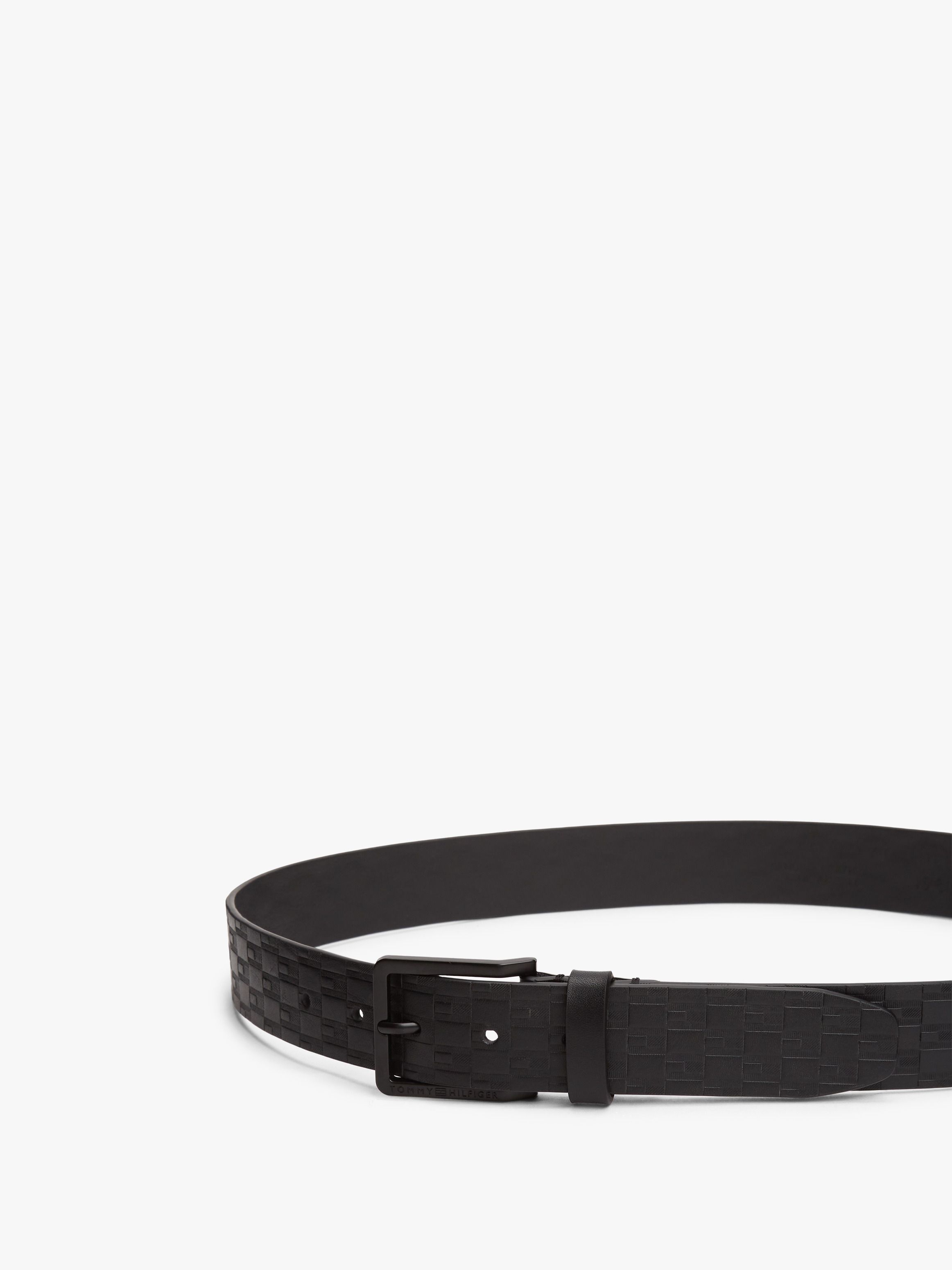 Add styling personality to smart and laid-back outfits with this leather belt, featuring an all-over repeat flag design with a textured finish.