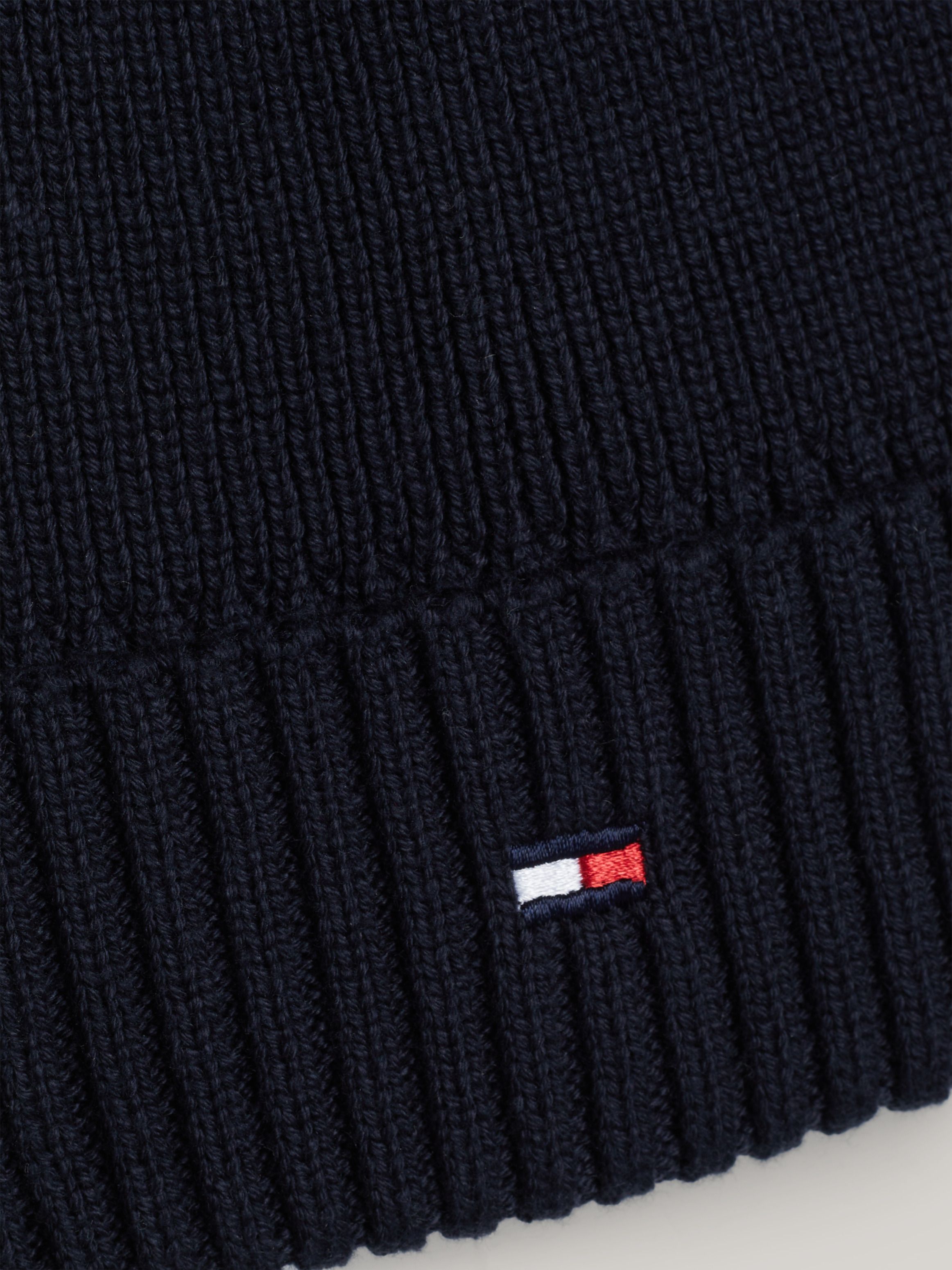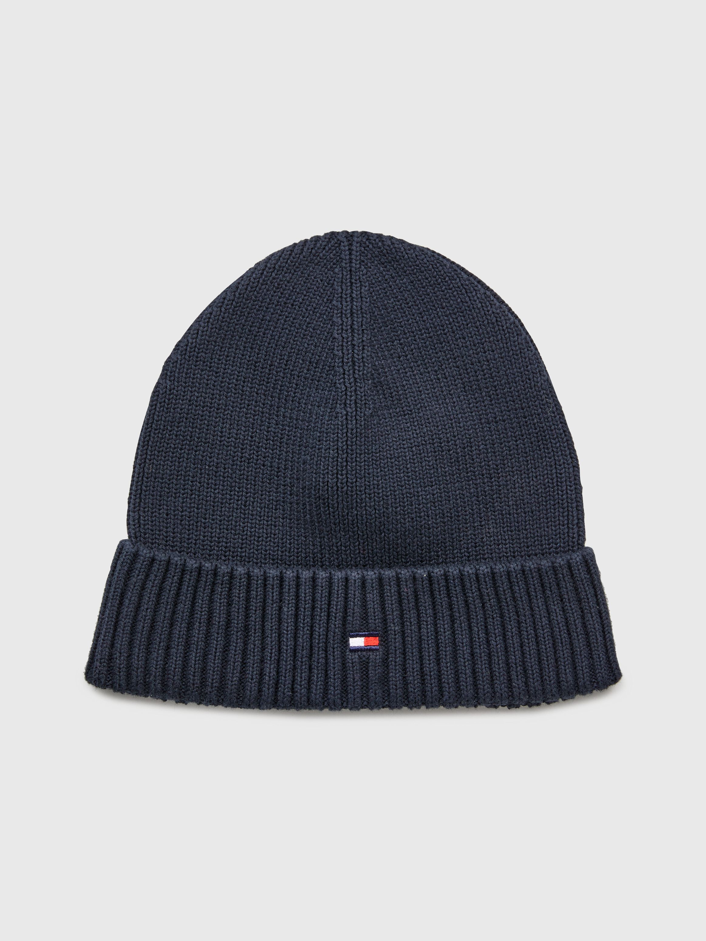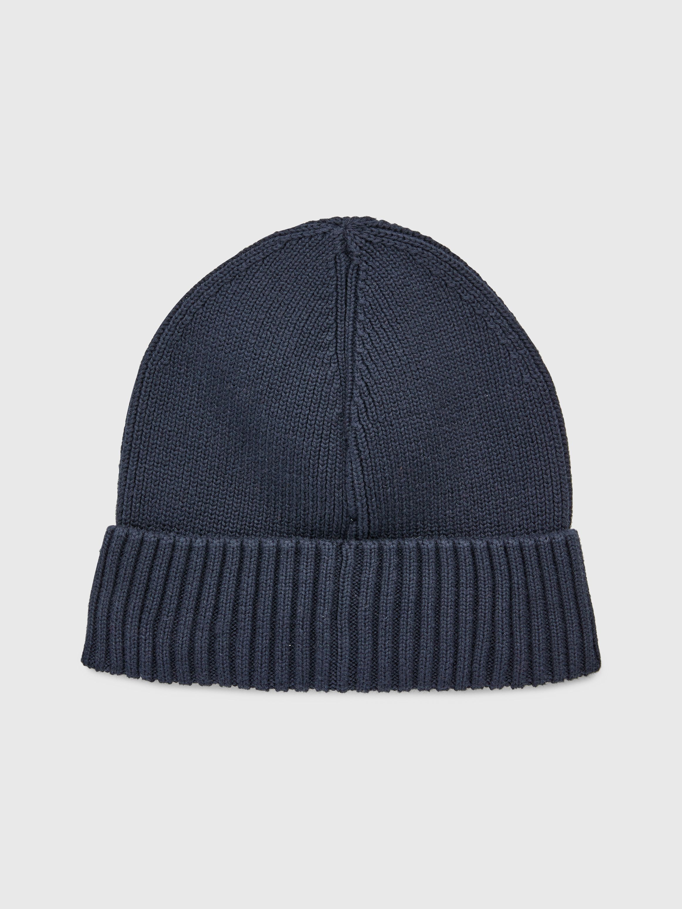 The beanie is the ultimate in snug style, featuring a contrast rib knit texture on the turn-up cuff.