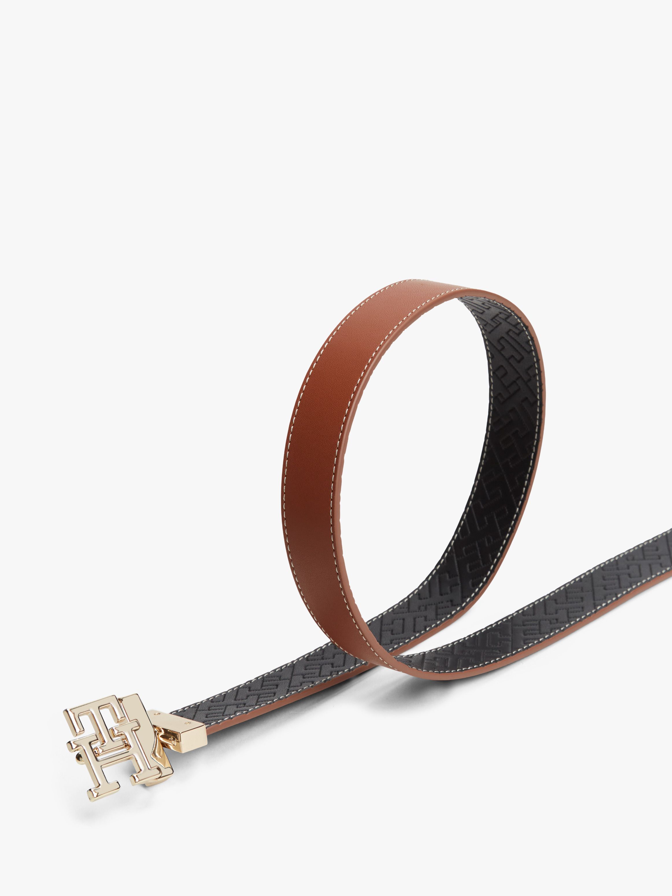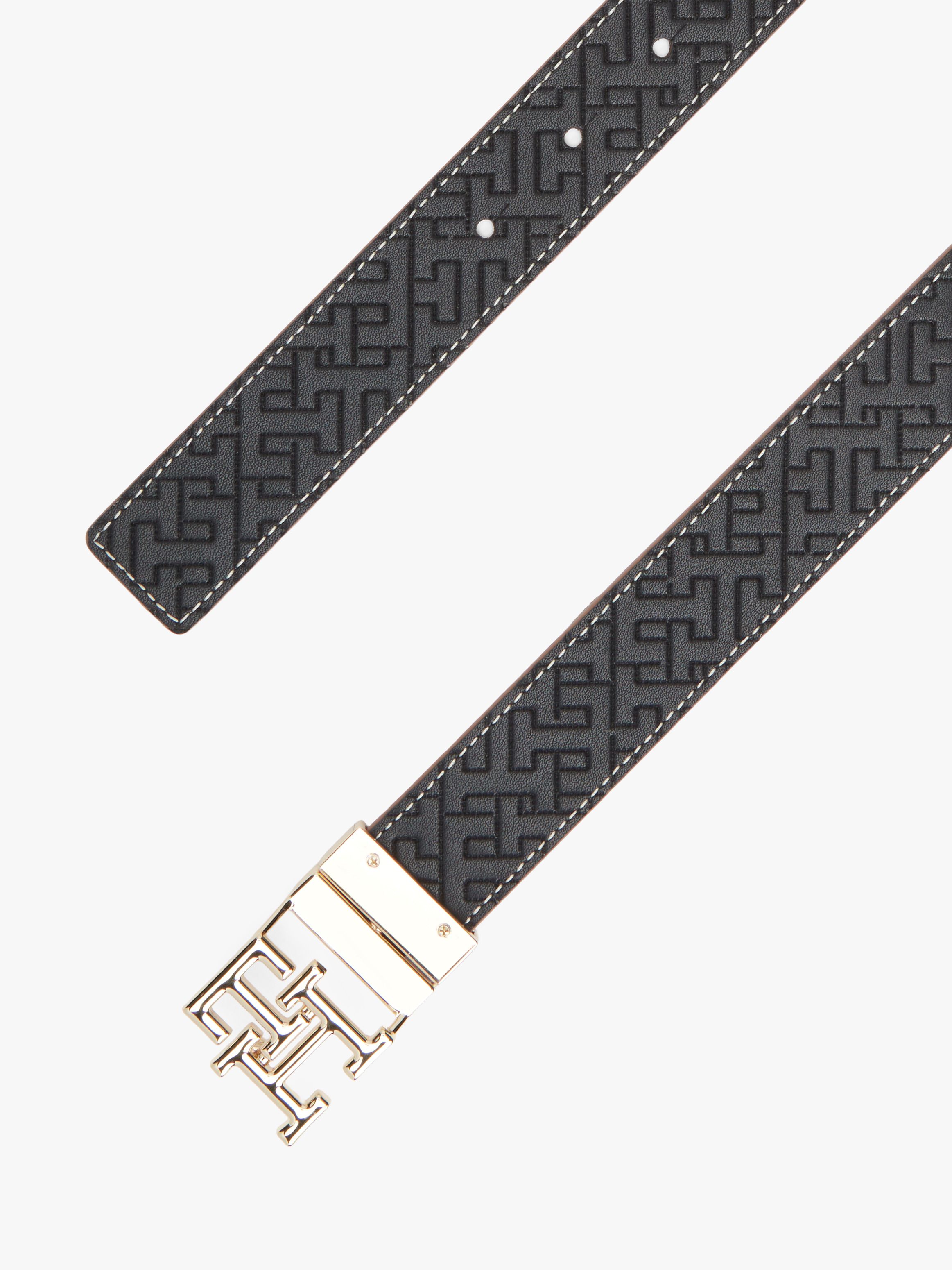 This reversible belt offers two looks in one, with its patterned or plain leather strap and pivoting TH monogram plaque buckle.