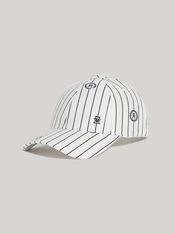 Choose this classic canvas baseball cap for a varsity-inspired look thanks to the all-over stripe with TH monogram pattern.