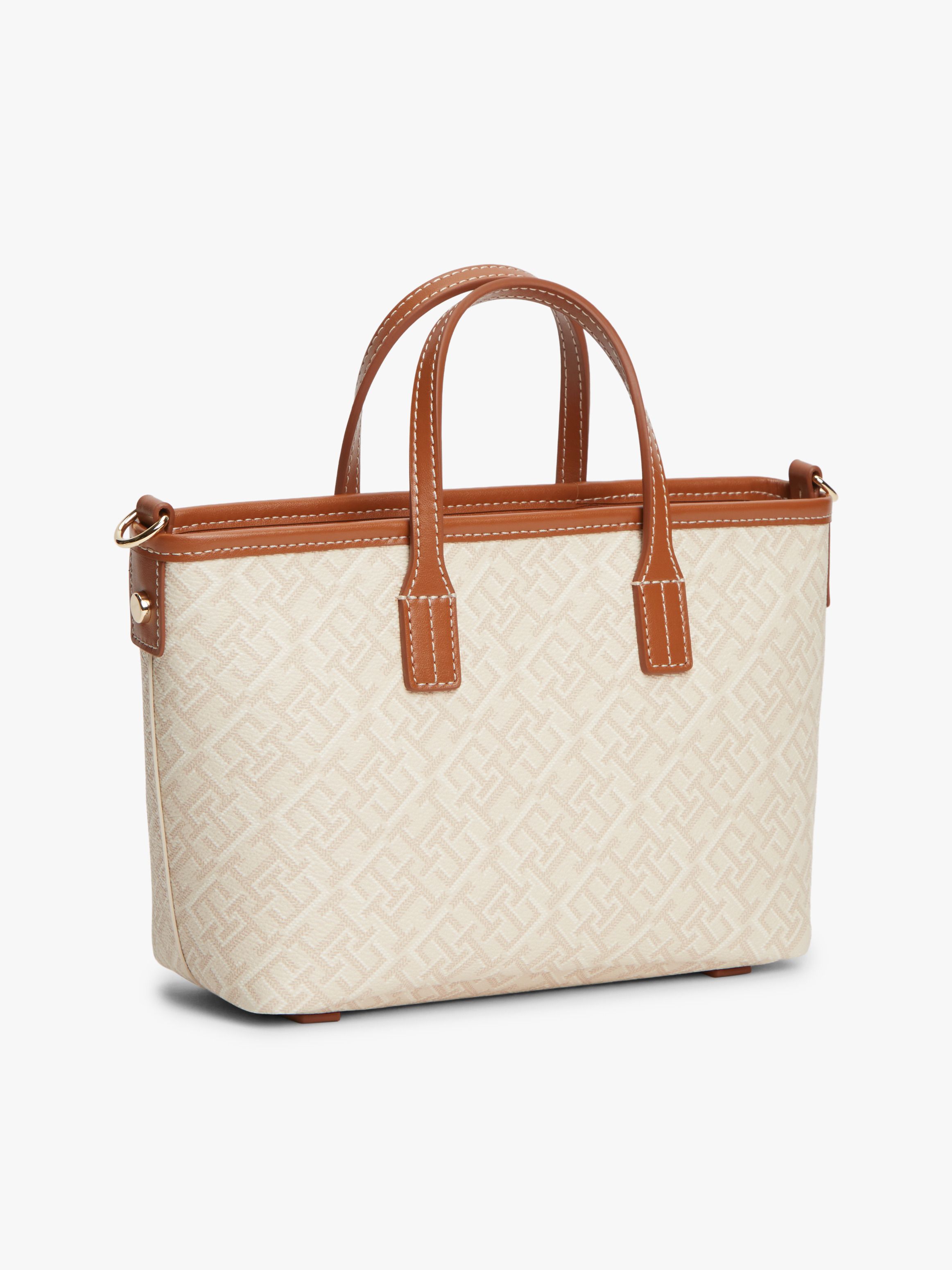 • Textured finish • All-over TH monogram print • Zip closure • Two top handles • Removable crossbody strap • One main compartment • D-ring keyring hook on front • TH monogram plaque on front • Tommy Hilfiger branding