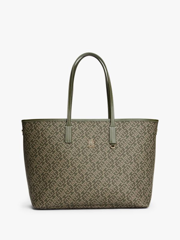 • Textured finish • All-over TH monogram print • Two top handles • Two main compartments • One zipped compartment • TH monogram enamel plaque on front • Tommy Hilfiger branding