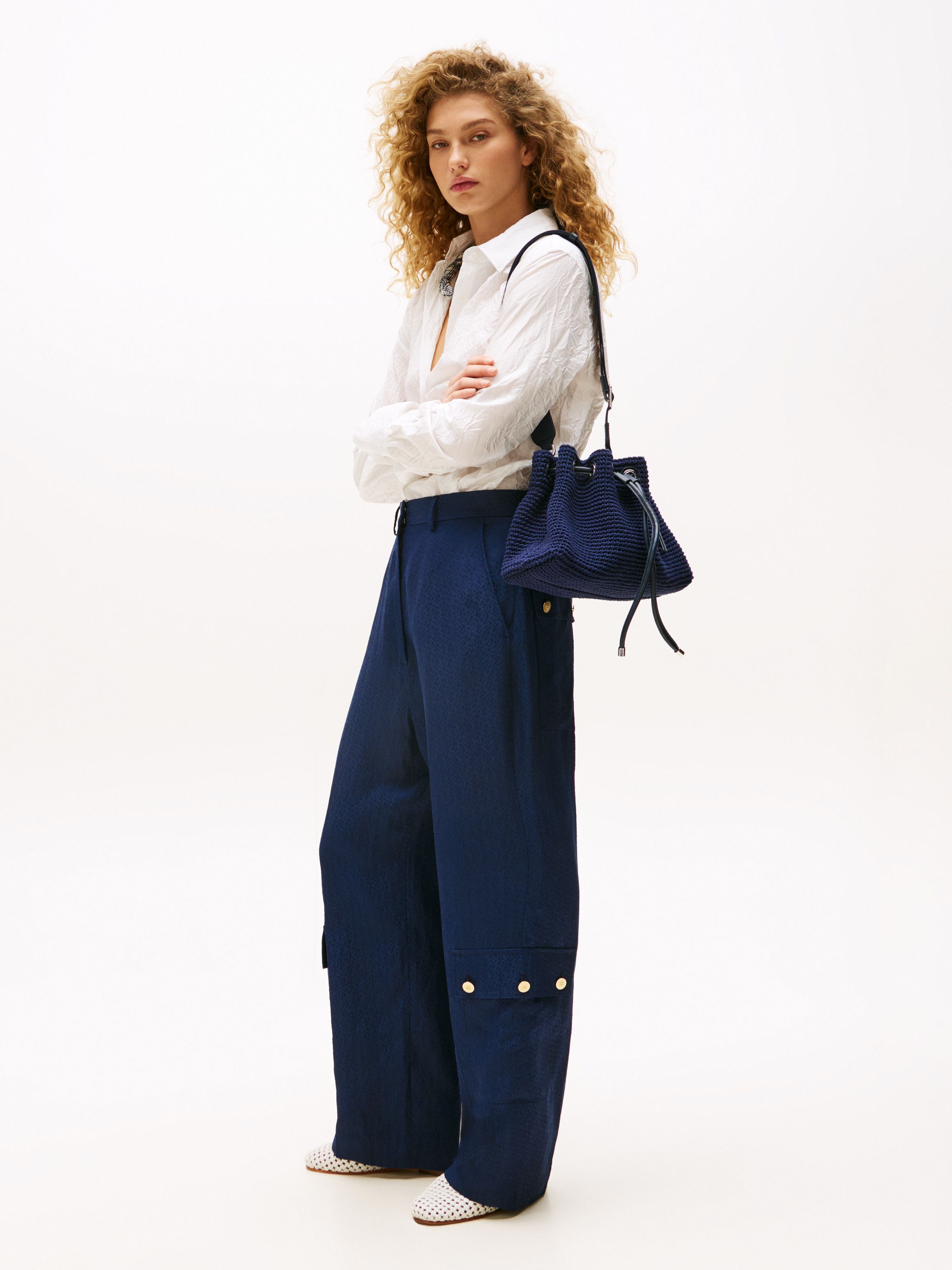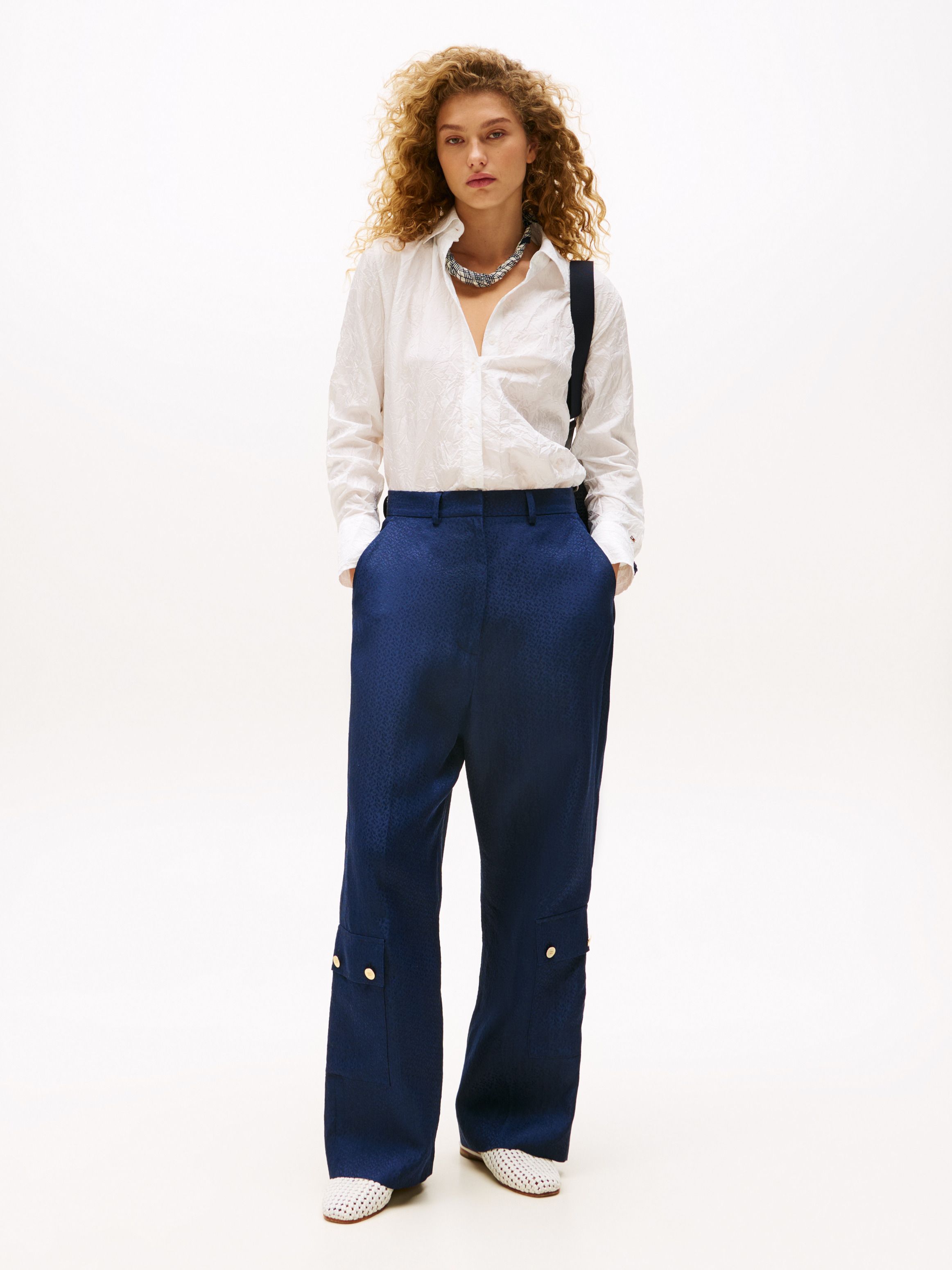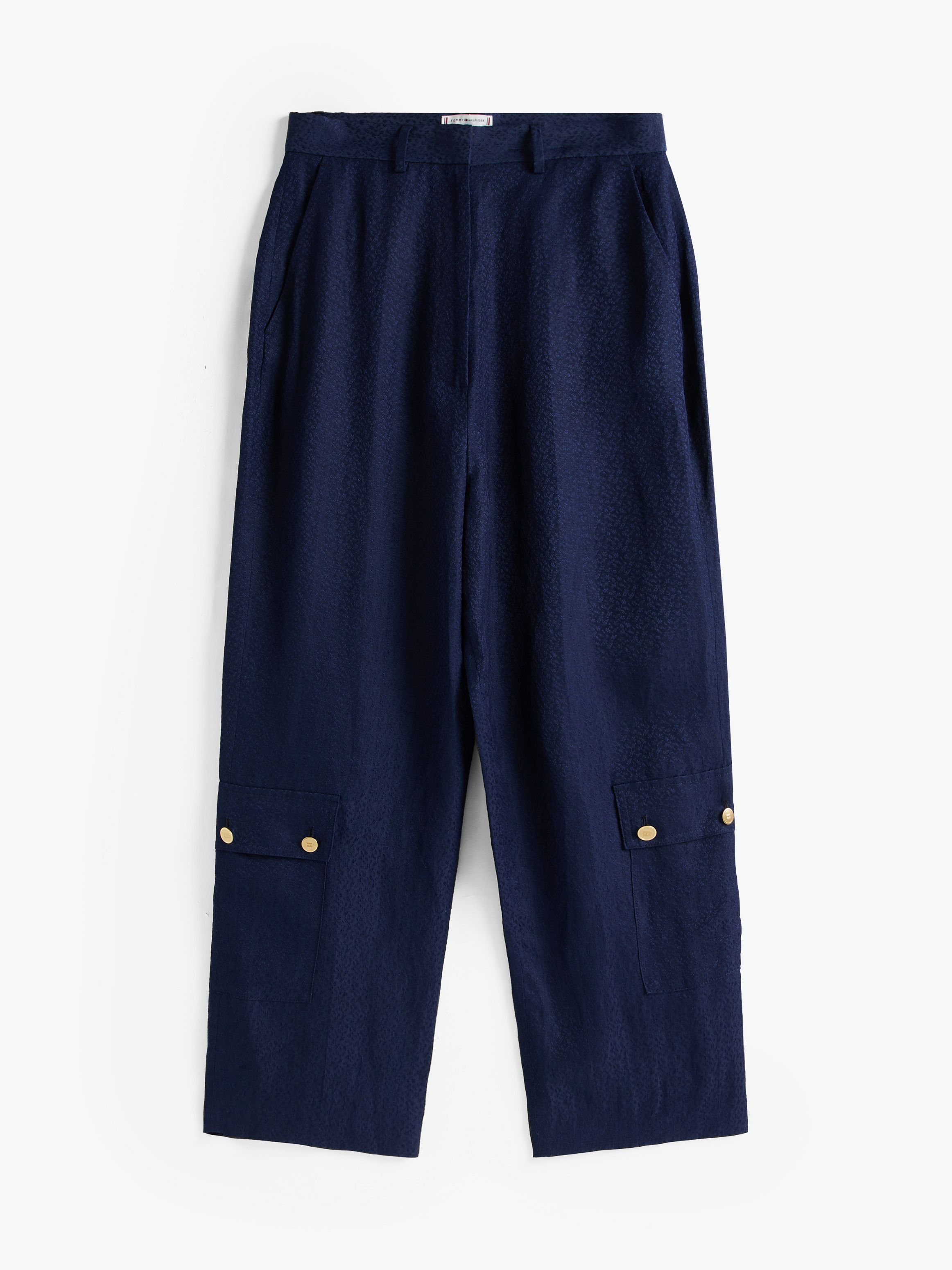 • Linen blend • Gold-tone buttons on cargo pockets • Pressed front and back creases • Zip with concealed hook fastening • Two side slip pockets • Two side cargo pockets • Two back cargo pockets • The Runway Collection branding