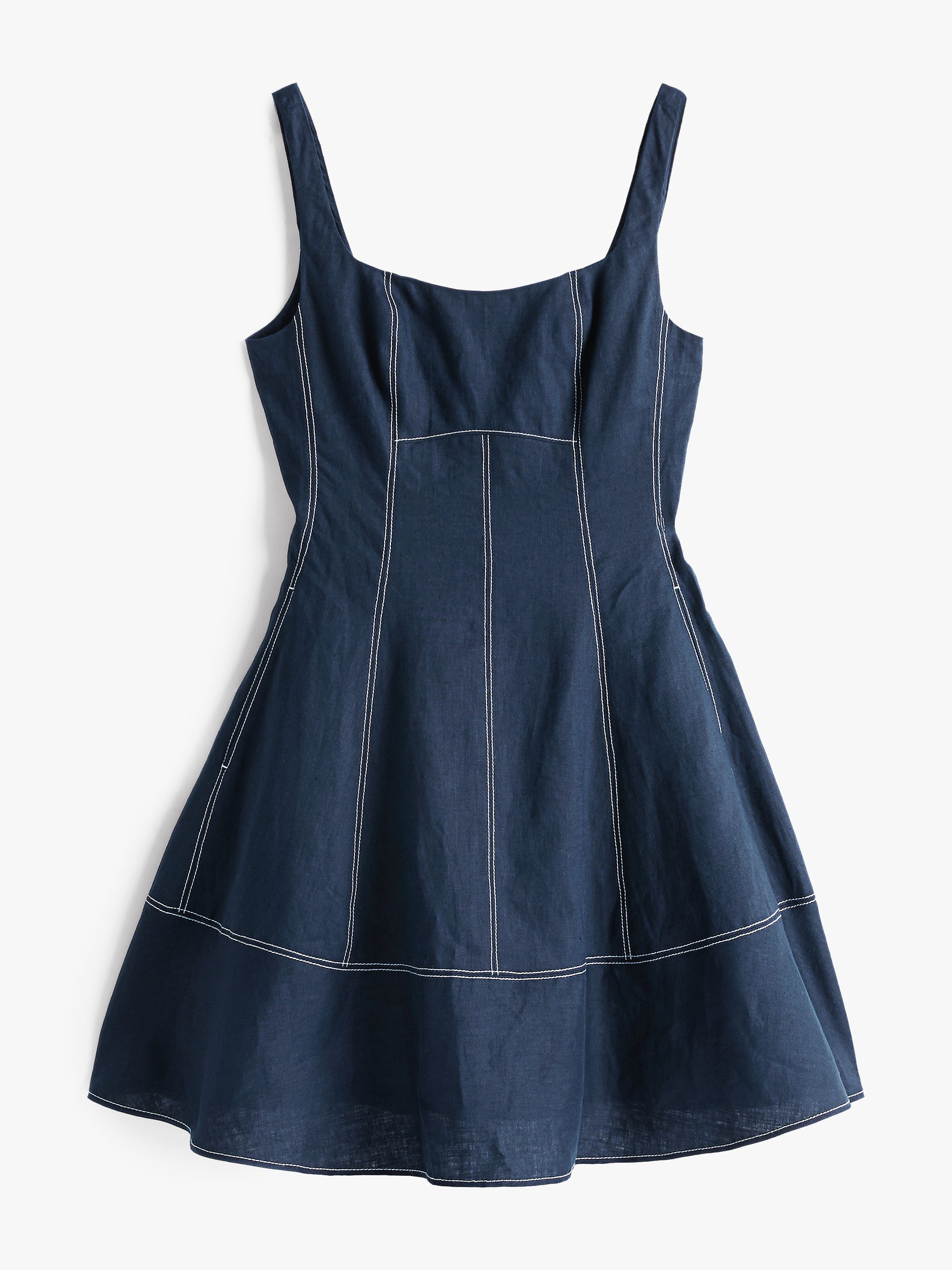 Welcome in the warmer weather with this breezy pure linen dress, featuring a modern square neckline and playful mini length.