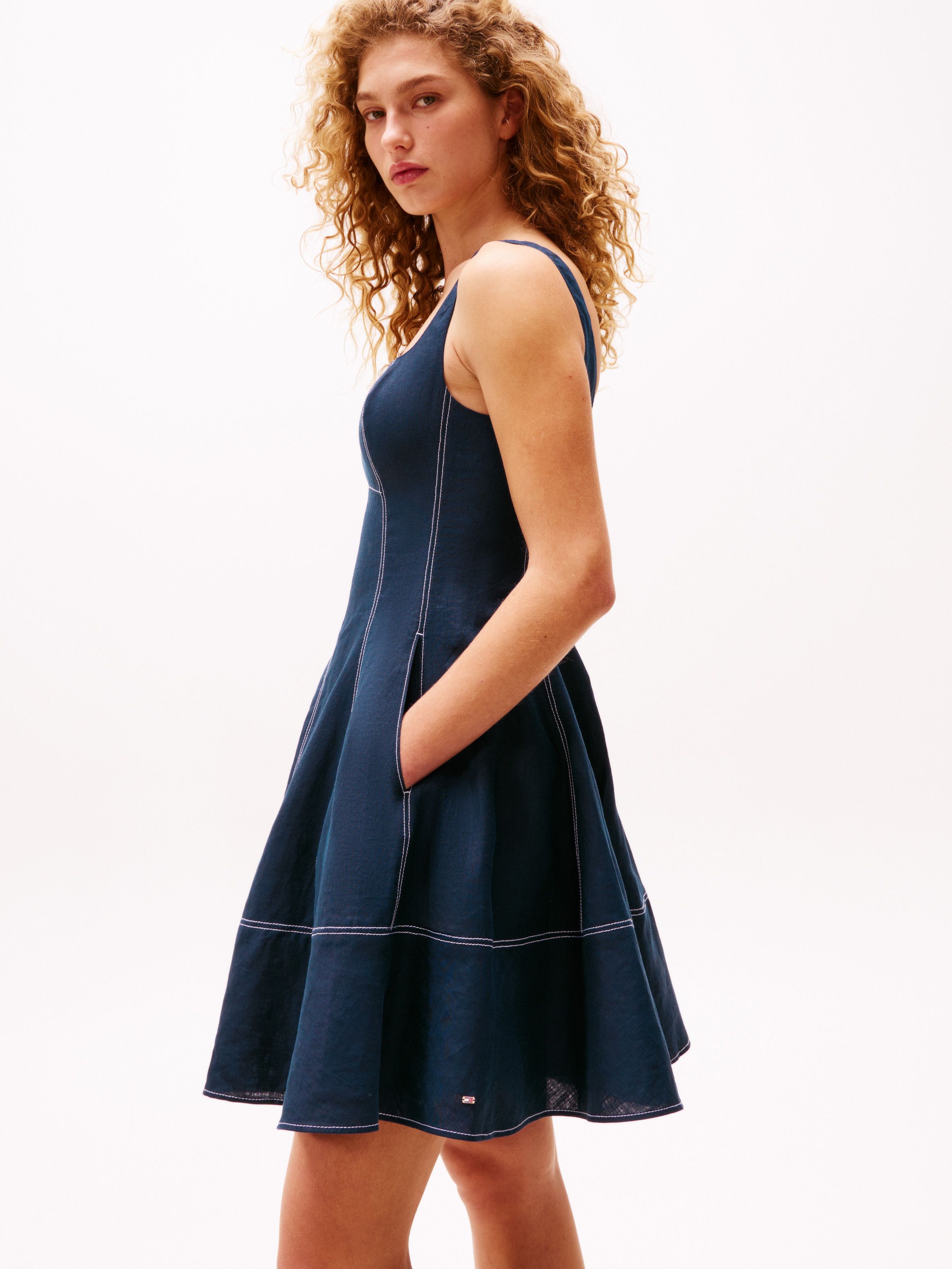 • Pure linen • Square neck • Panelled design • Concealed zip fastening on back • Two side slip pockets • The Sofia Capsule branding • Tommy Hilfiger metal flag on hem