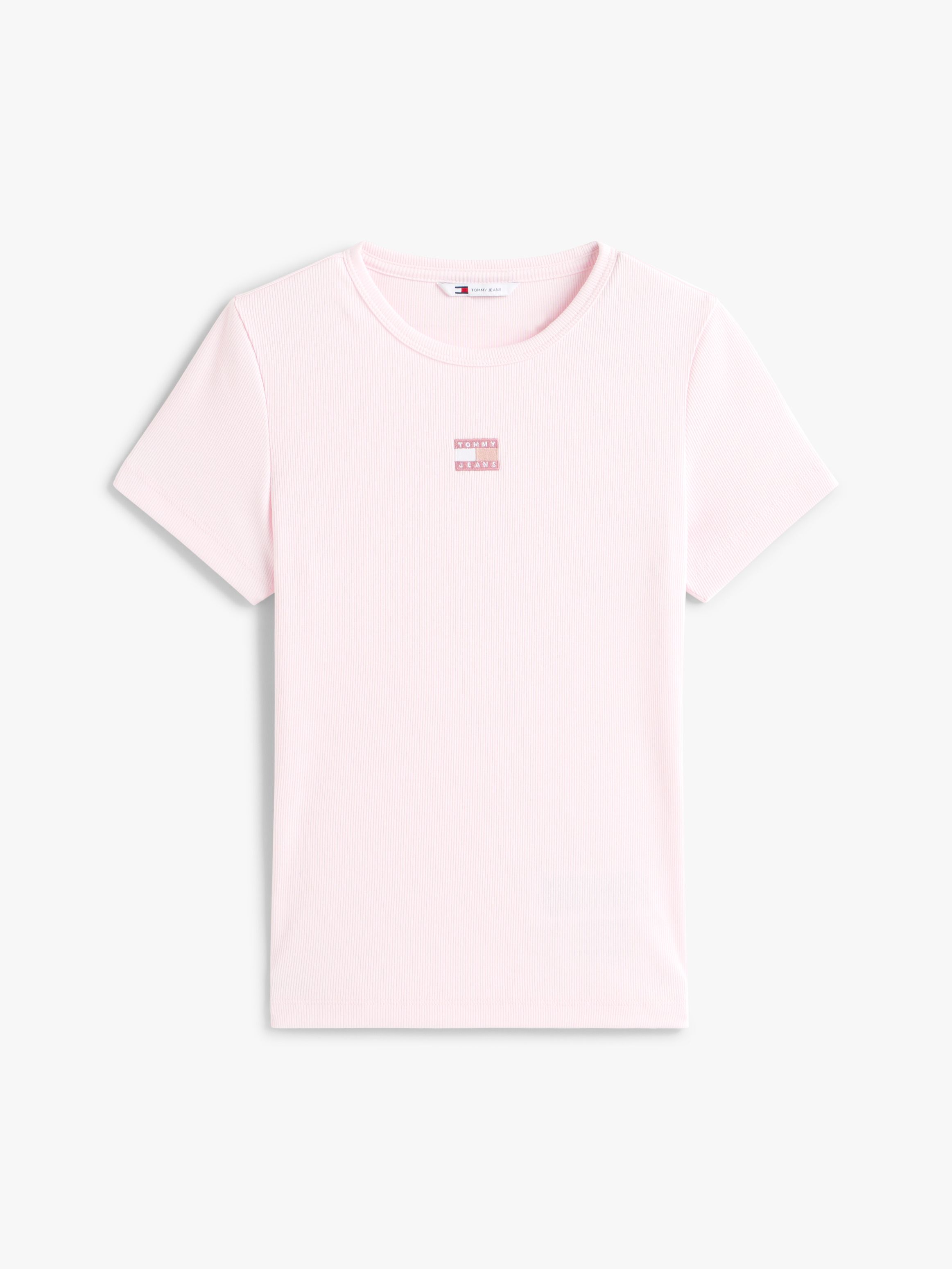 This classic ribbed T-shirt is cut in a flattering slim fit, with a Tommy badge on the chest adding a signature finish.