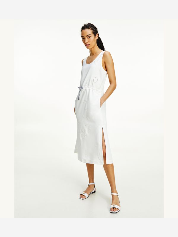 The relaxed fit, contemporary broderie anglaise design and recycled crepe fabric give this sleeveless dress a lightweight, laid-back feel.