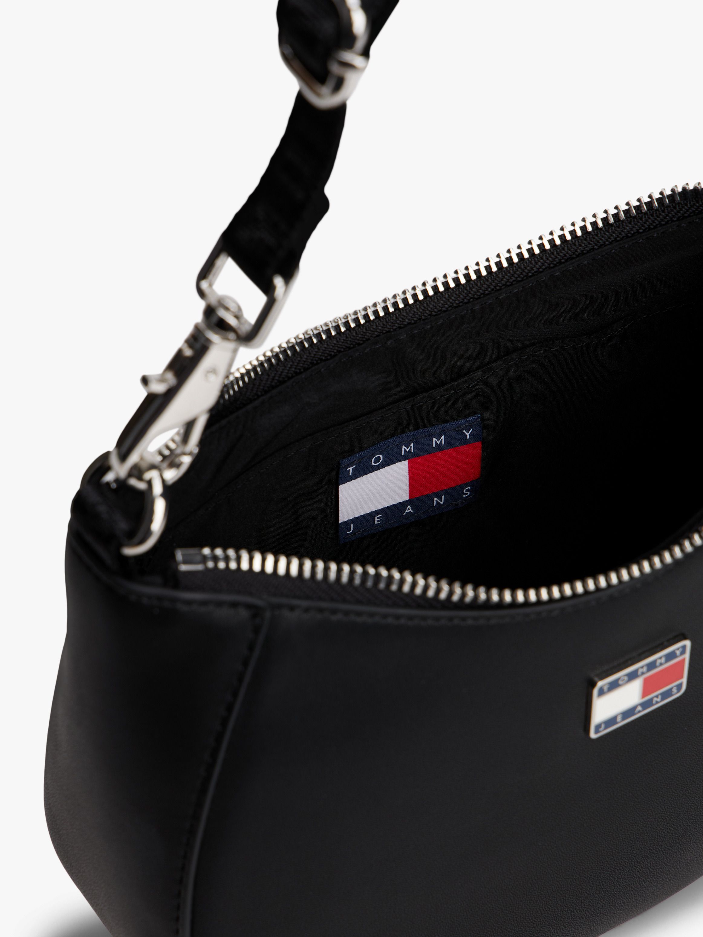 • Smooth finish • Zip closure • Shoulder strap • One main compartment • One interior slip pocket • Tommy badge debossed on zip pull • Metal Tommy Jeans logo on front • Tommy Jeans branding