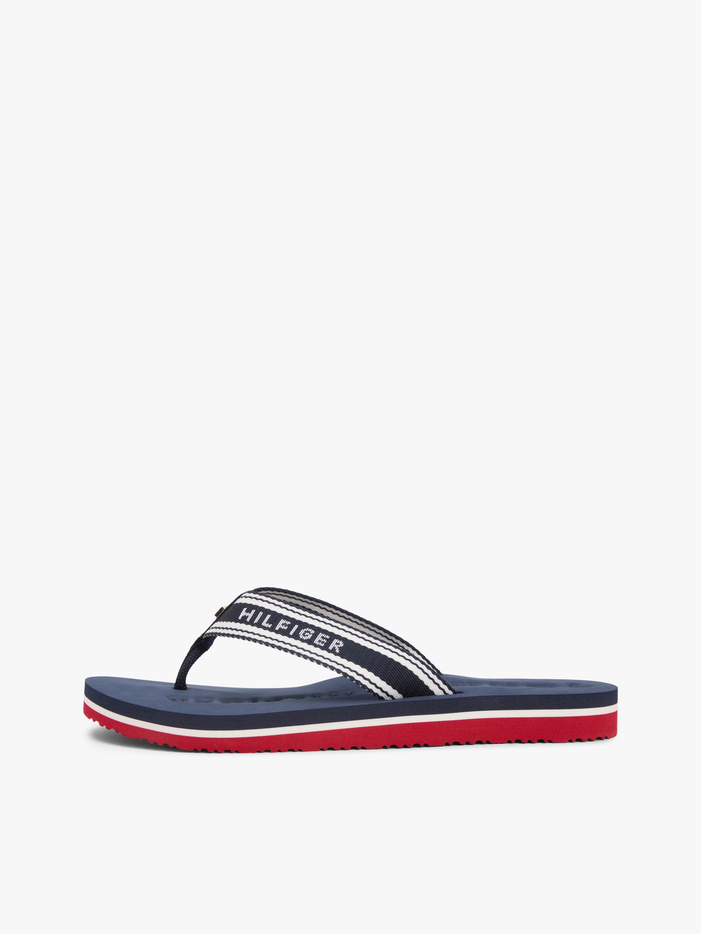 • Polyester upper • Polyester lining • EVA footbed • EVA outsole • Jacquard webbing straps • Signature colour-blocked design on midsole • Tommy Hilfiger logo debossed on footbed • Tommy Hilfiger enamel flag on toe post • Tommy Hilfiger branding