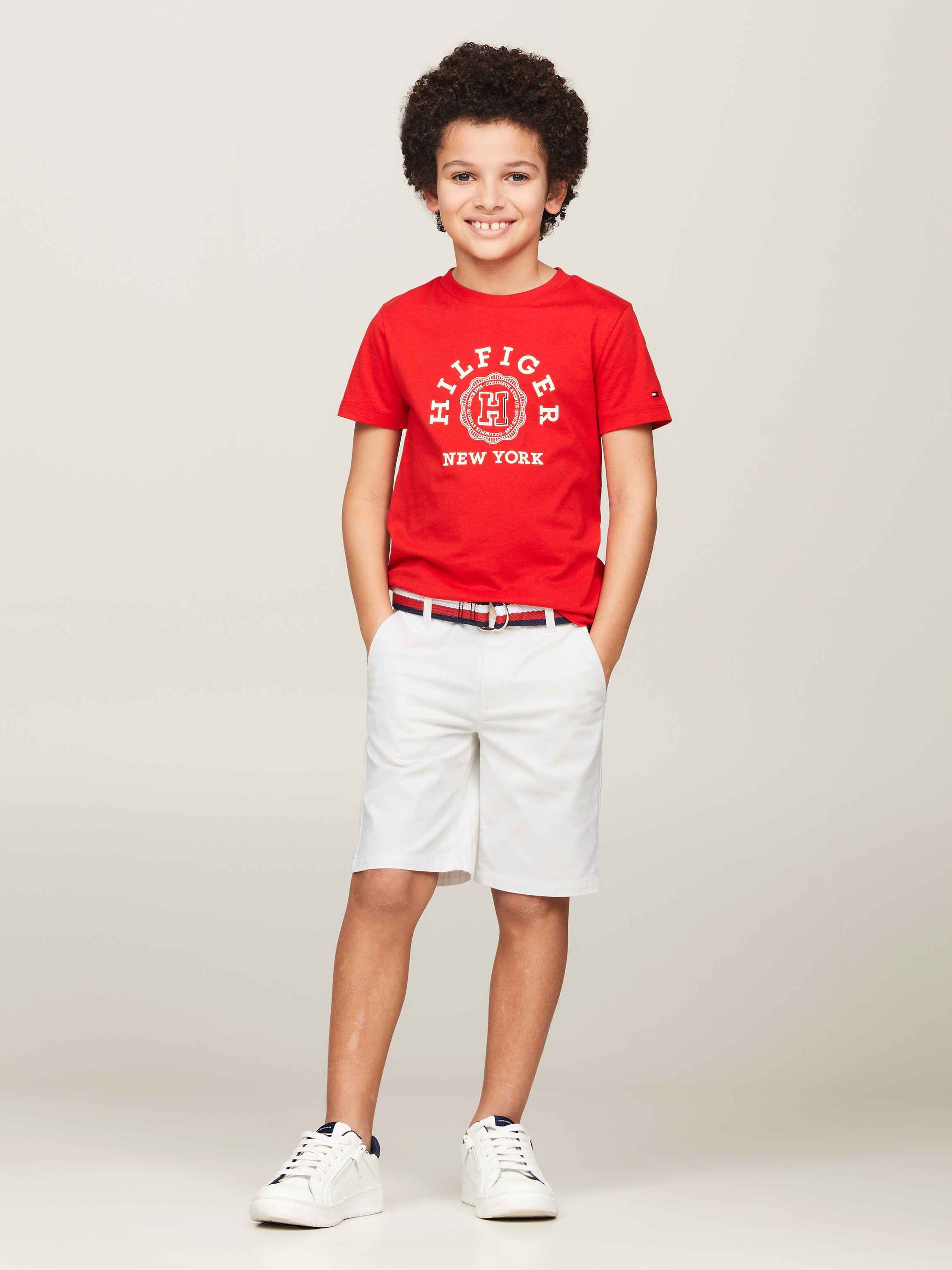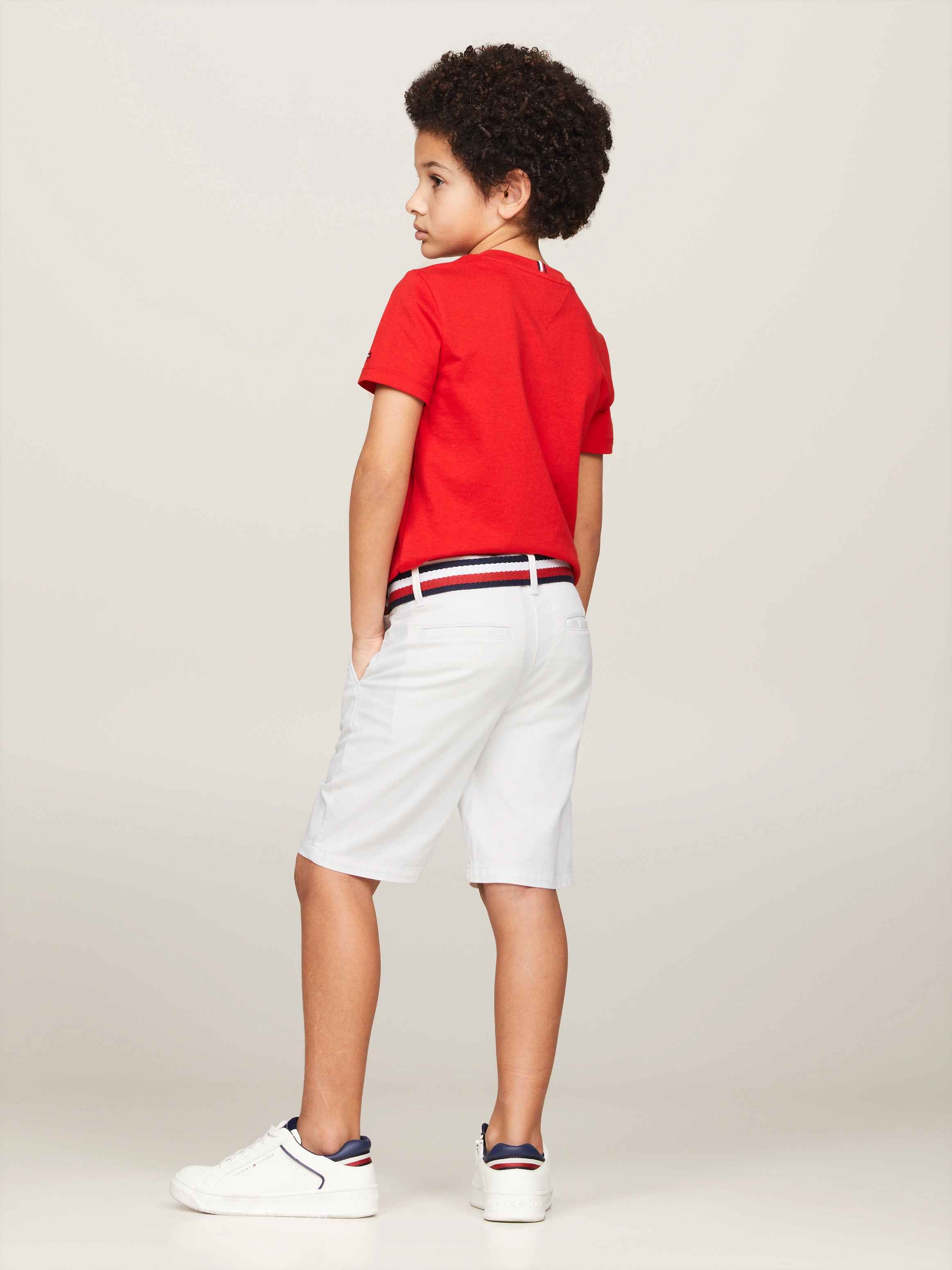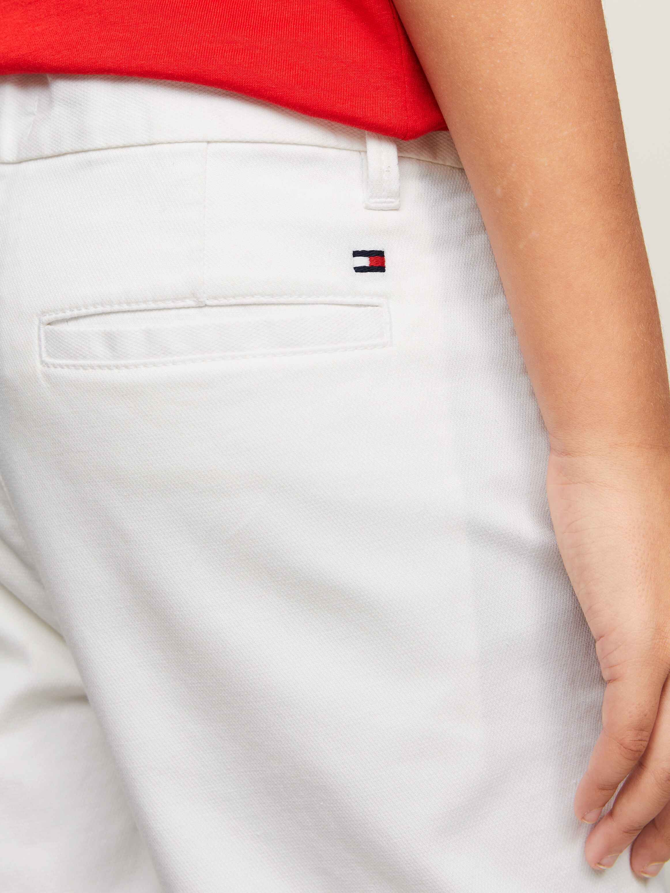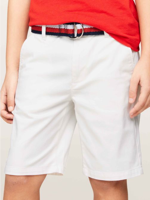 • Stretch organic cotton • Two side angled slip pockets • Two back welt pockets • Woven signature belt • Tommy Hilfiger branding • Tommy Hilfiger flag embroidery on back